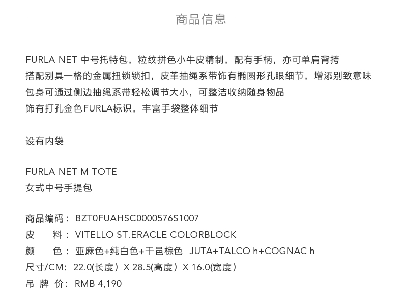 FURLA芙拉NET女式中号拼接手提包托特包
