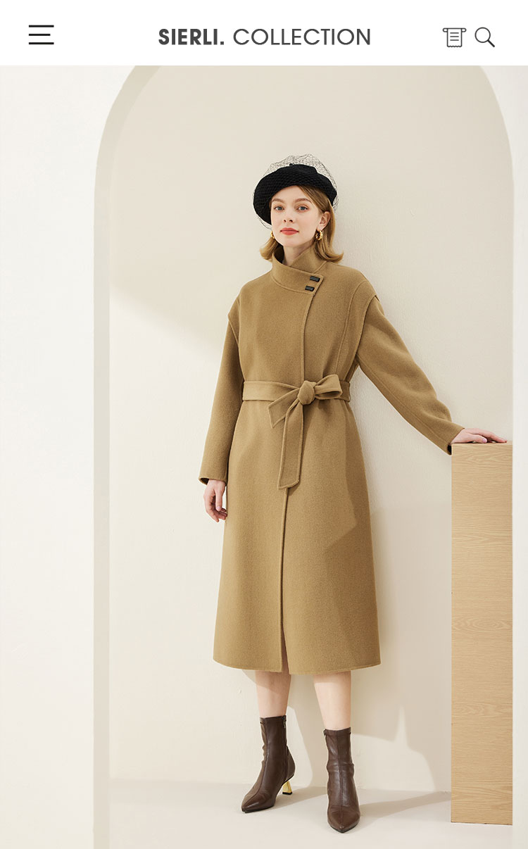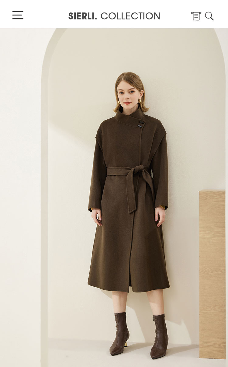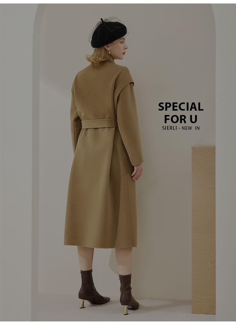 MH9F9斯尔丽瑟俪2022年冬上新商场同款高级立领牛角扣系腰带宽松大衣