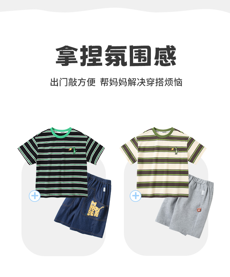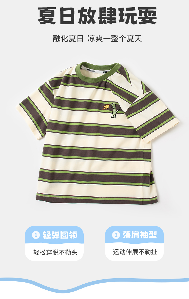 【5A级抑菌】【80-140】【MQDmini】男童短袖条纹T恤