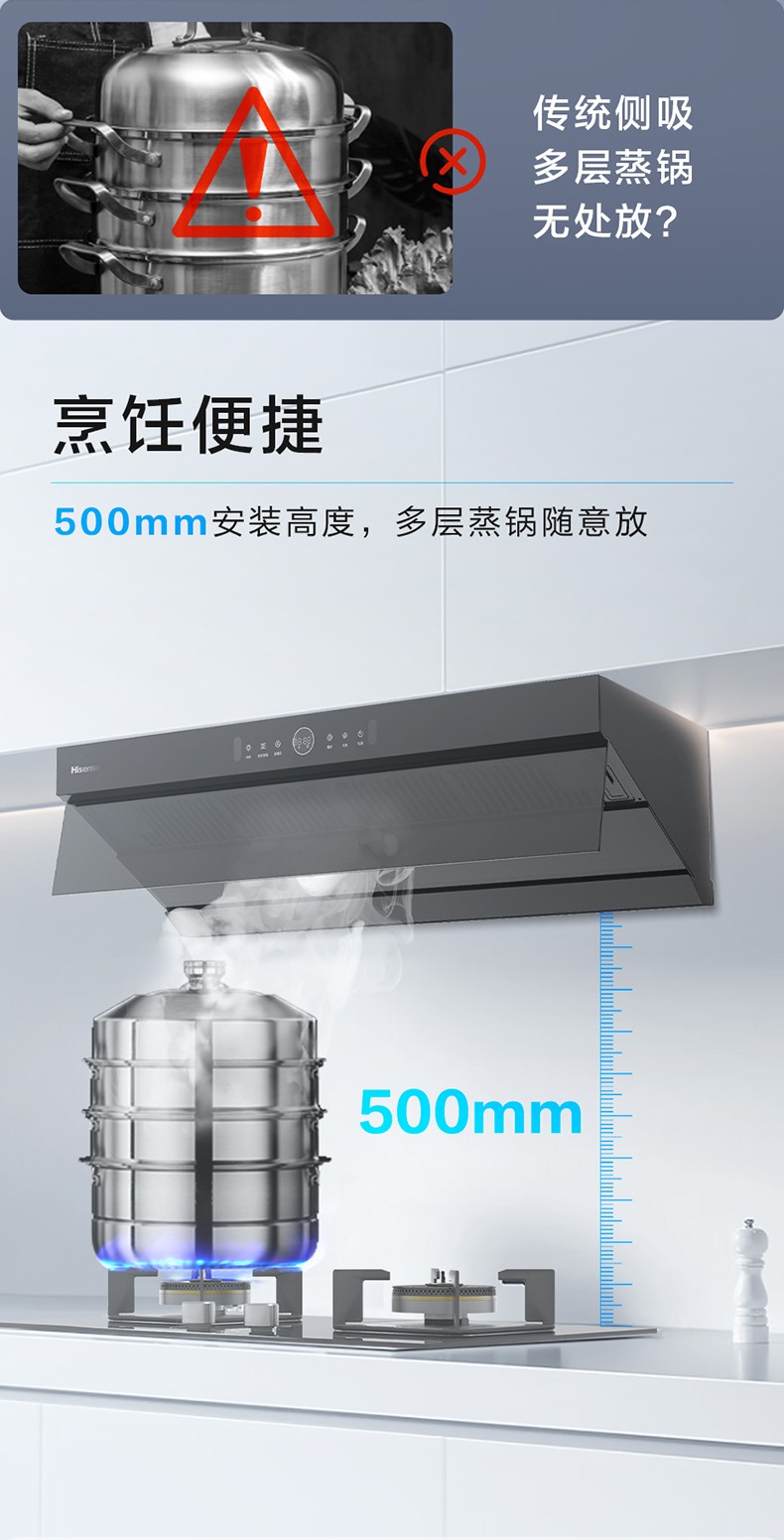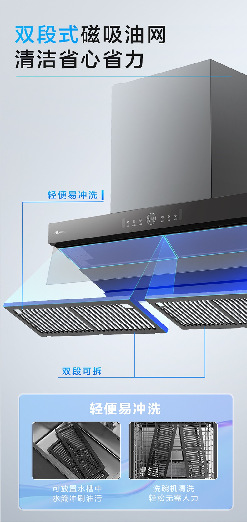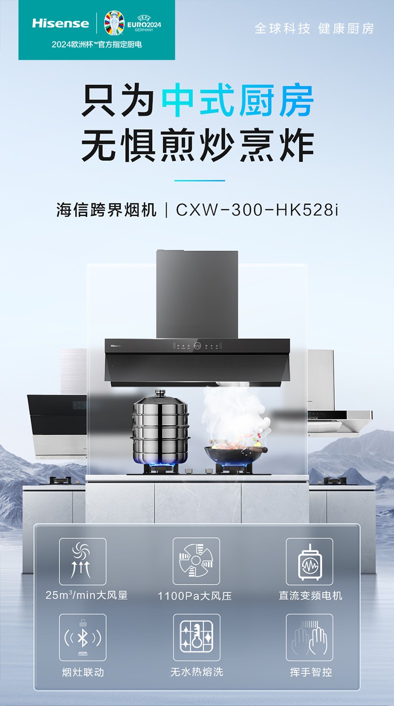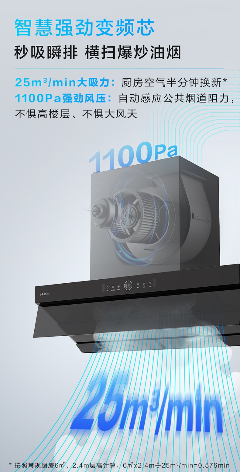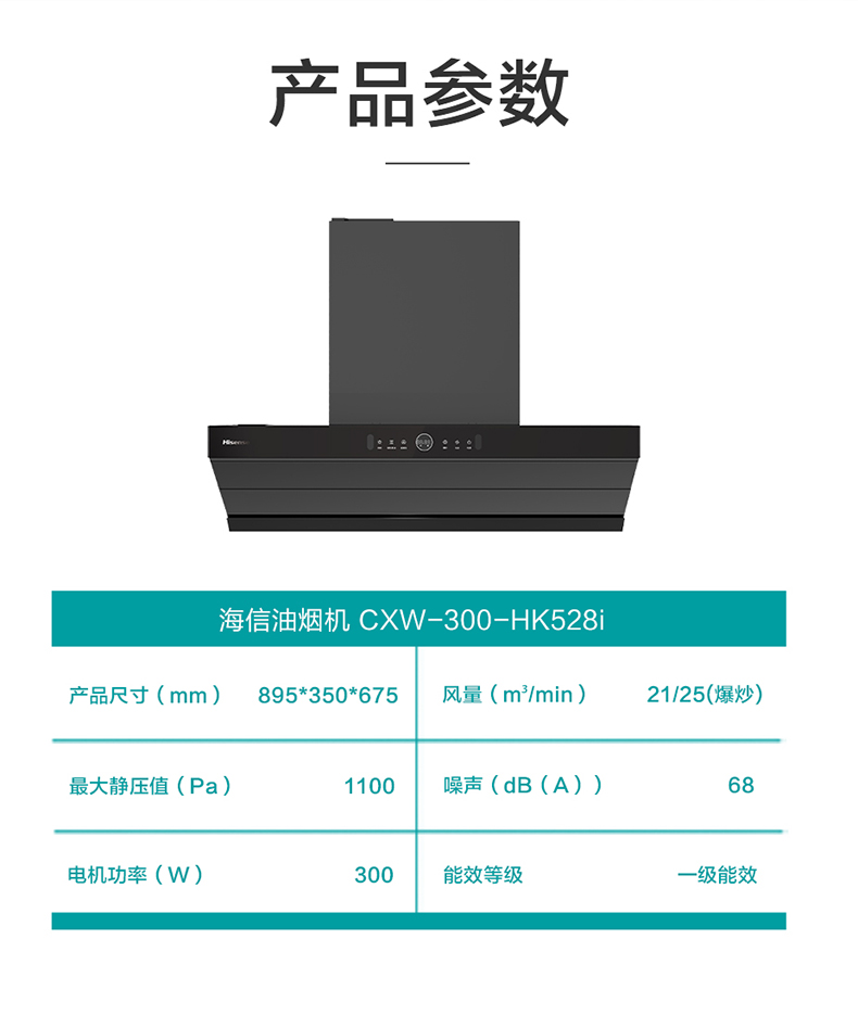 海信【CXW-300-HK528I】25m³/min大风量/1100pa大风压/直流变频电机/烟灶联动/无水热熔洗/挥手智控