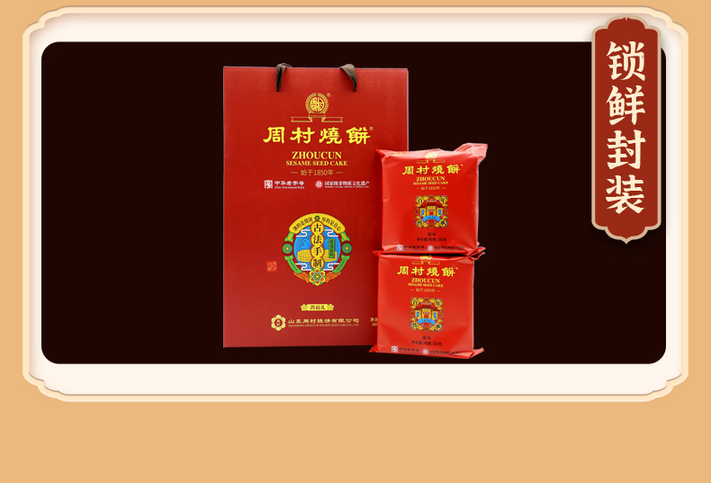 周村烧饼年货特产礼盒山东特产周村烧饼鸿福礼盒50g*12袋甜味零食