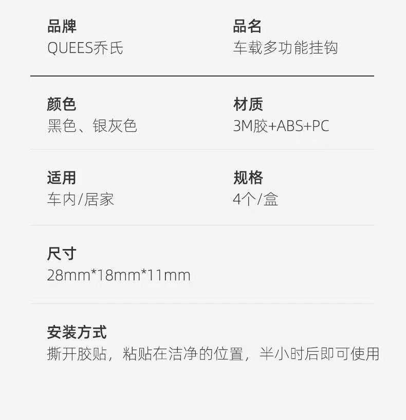 乔氏车载挂钩小粘钩置物汽车内多功能车用好物内饰