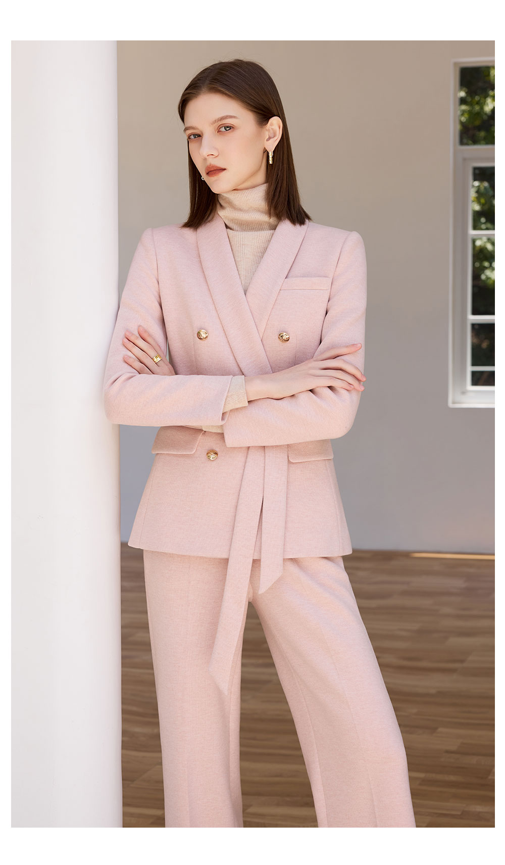IWY/气质羊毛粉色西装套裤女时尚绑带美容院前台接待职业工作服CP2495-P