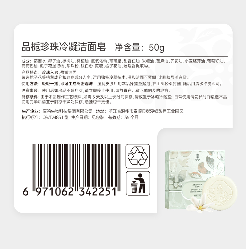 栀子花入皂159天低温冷凝洁面养肤珍珠皂