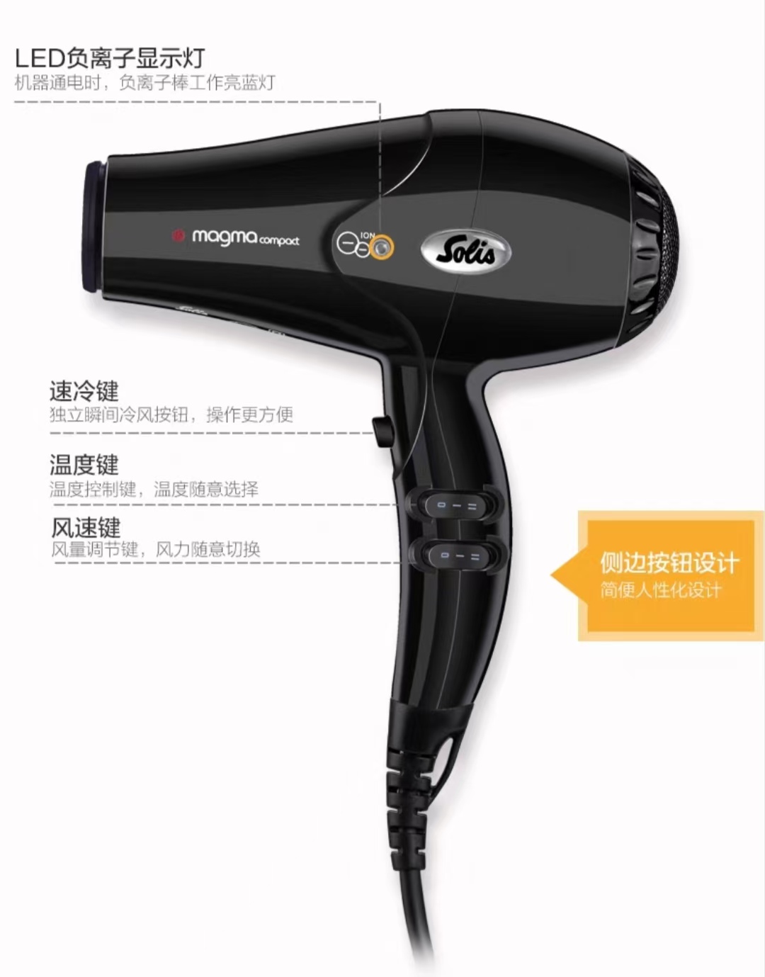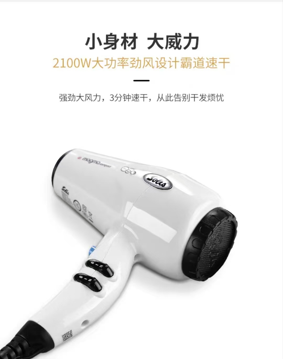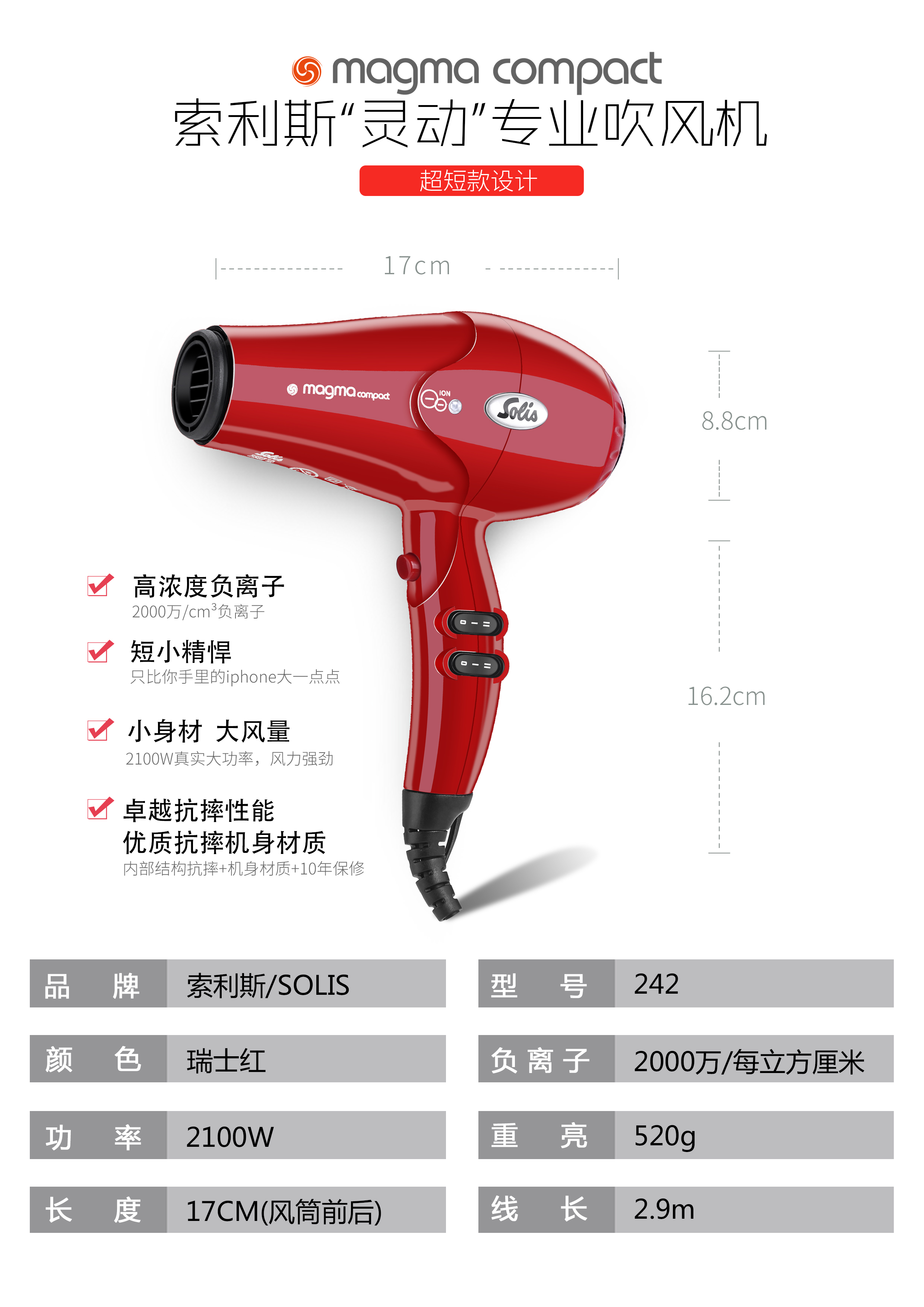 Solis索利斯 242 电吹风/综合风机/2100瓦/卷发/大波浪/快吹/吹干/低风/高风/白色/红色/短款