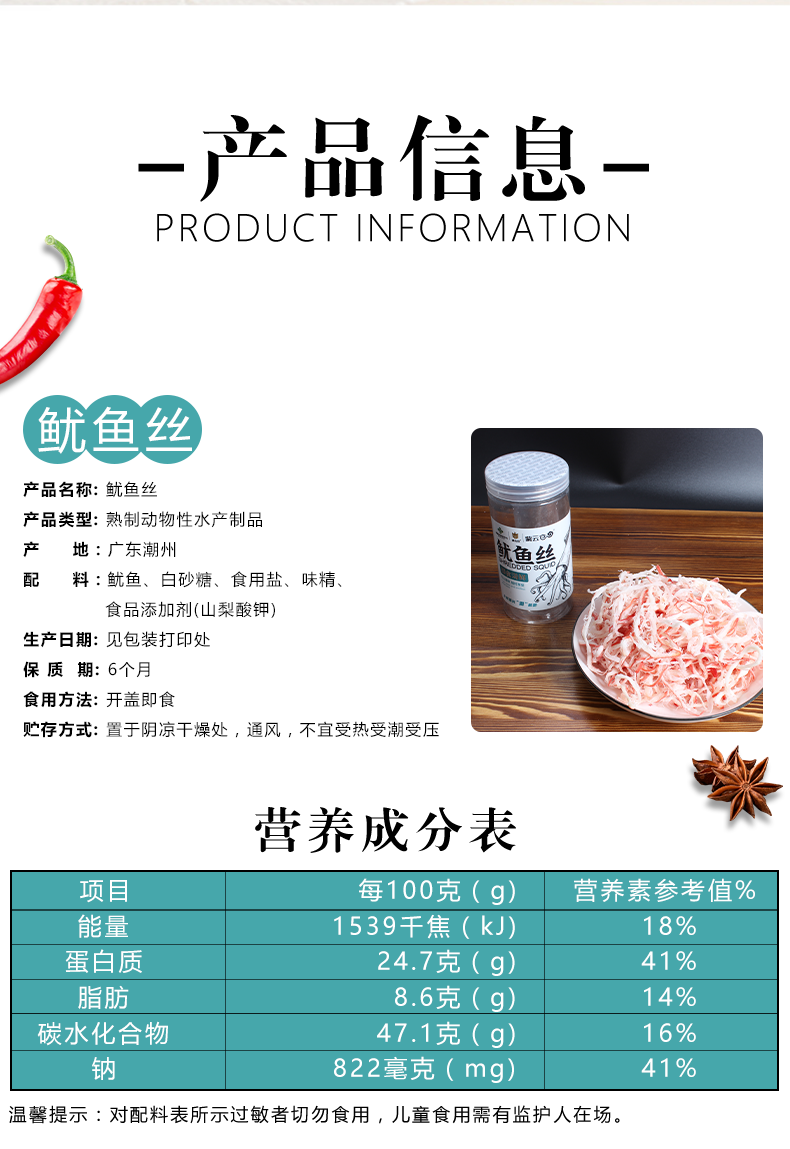 潮农投即食海鲜(鱿鱼丝)170g/瓶