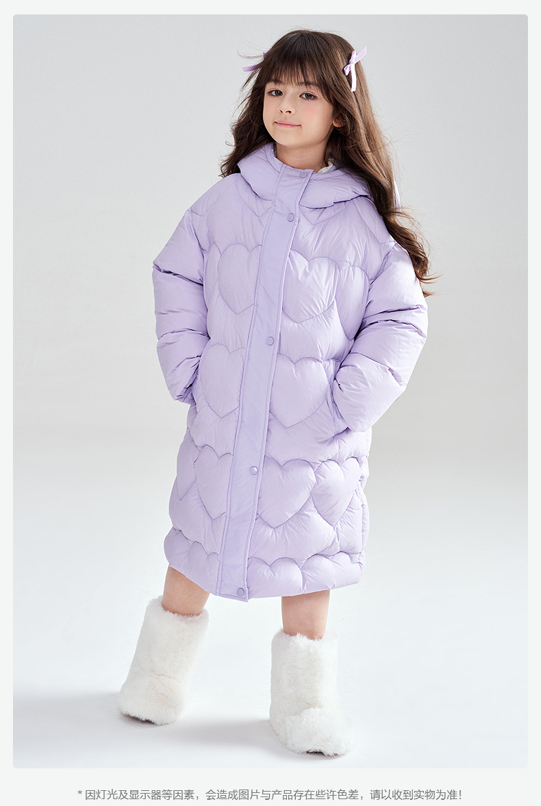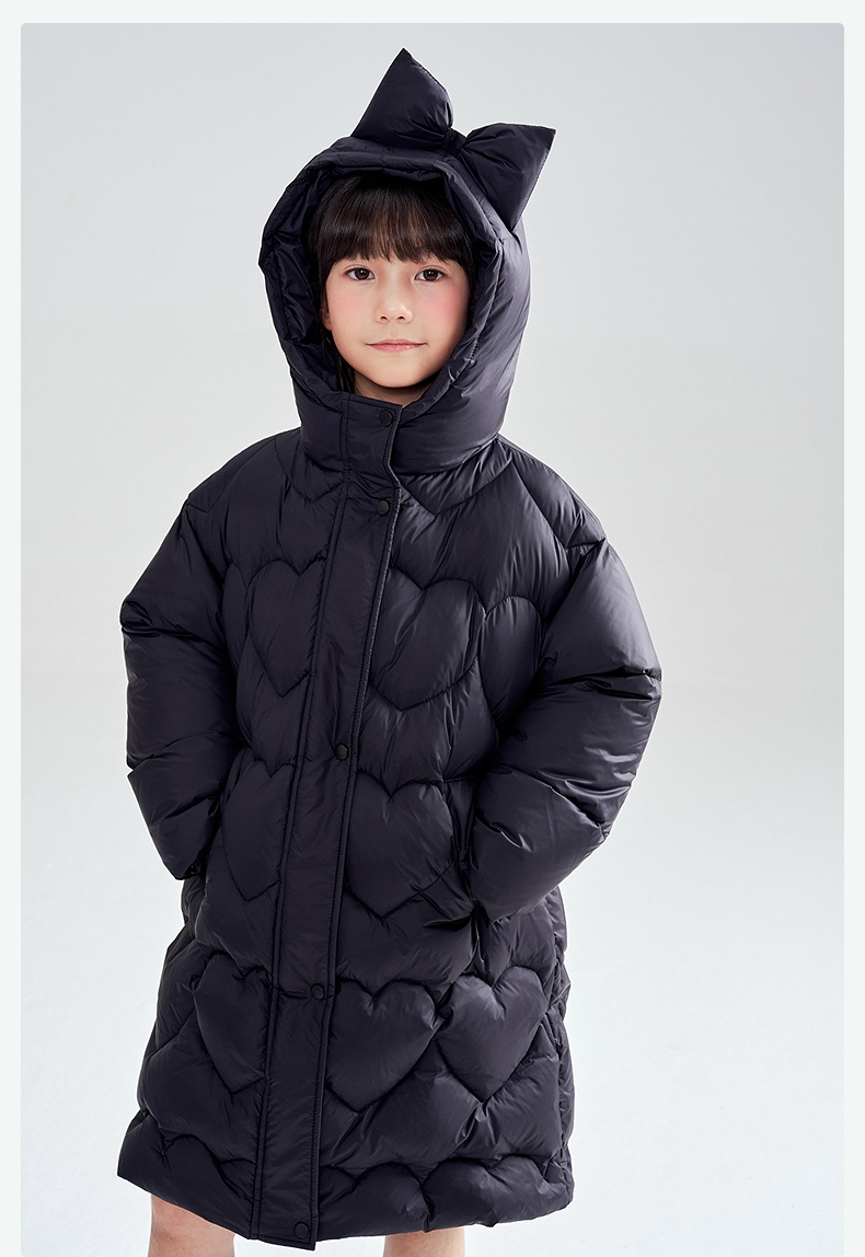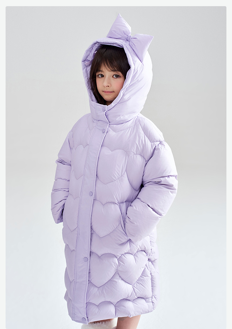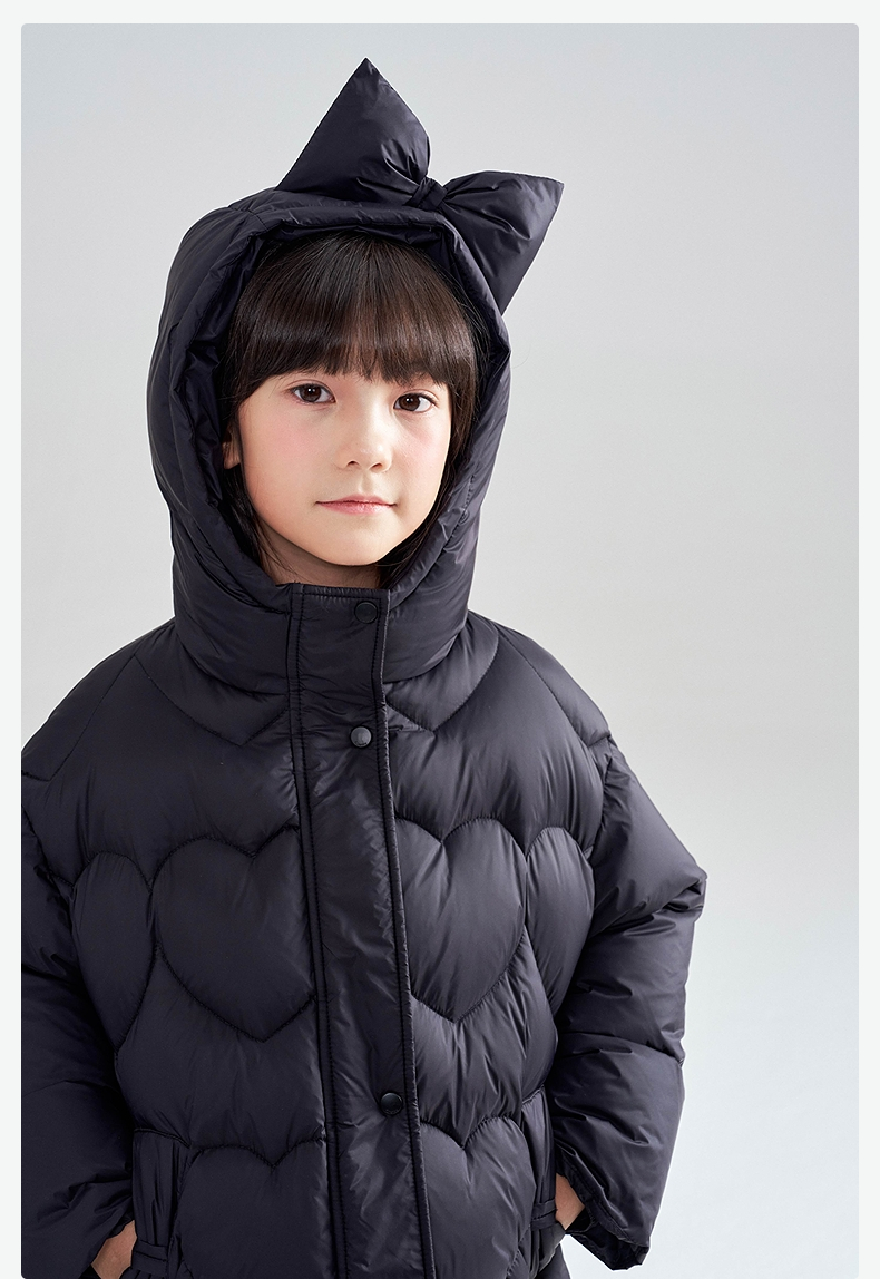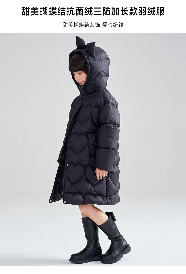 笛莎Deesha 2025冬季女童甜美蝴蝶结抗菌绒三防加长款羽绒服