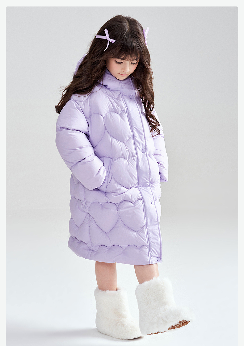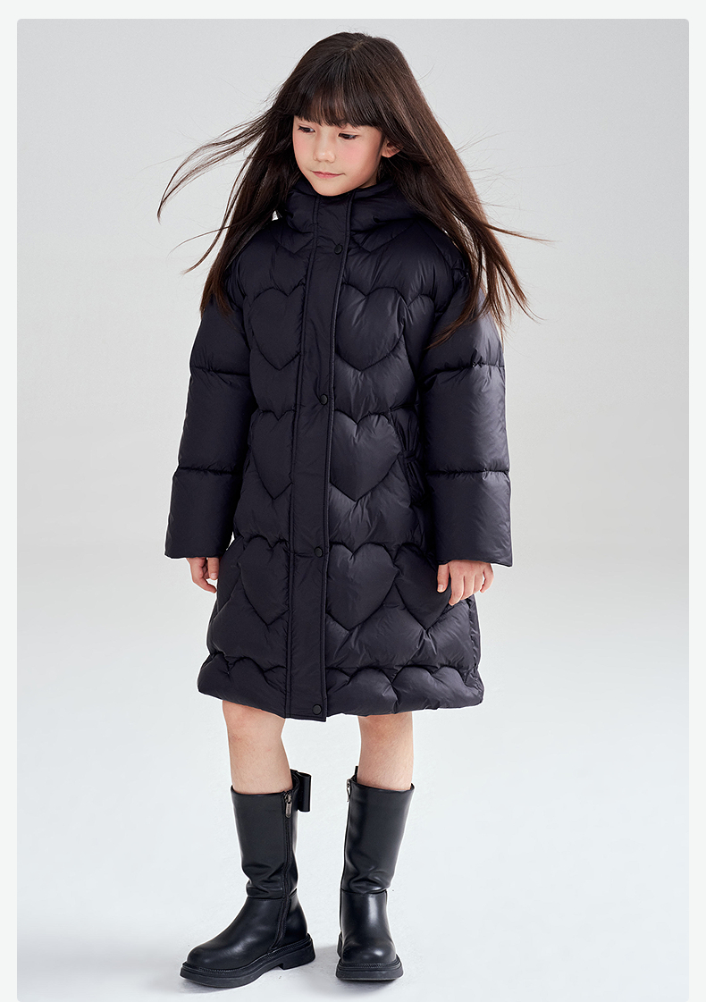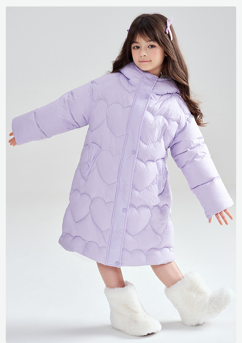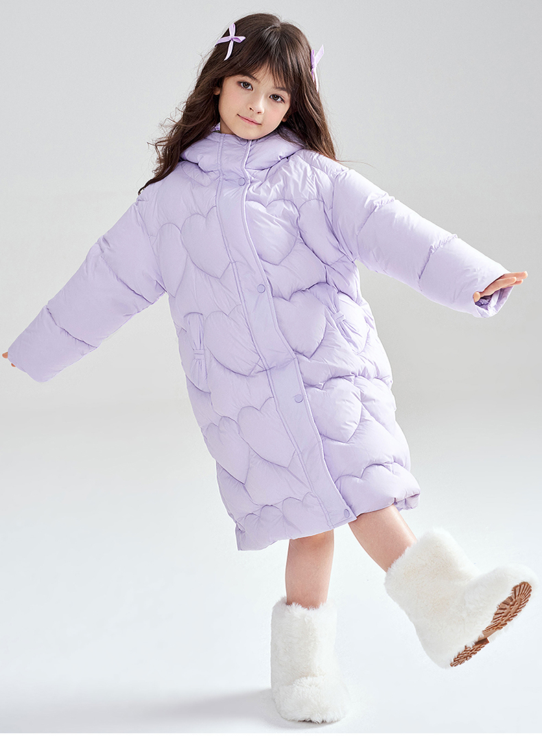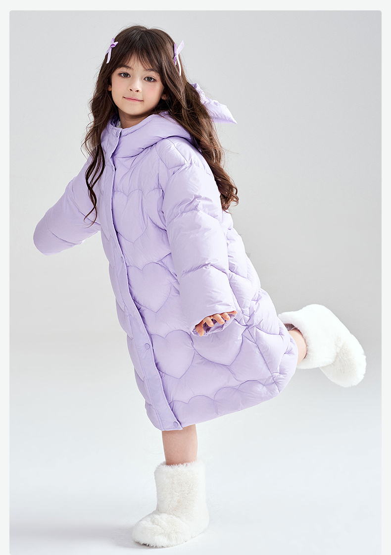 笛莎Deesha 2025冬季女童甜美蝴蝶结抗菌绒三防加长款羽绒服