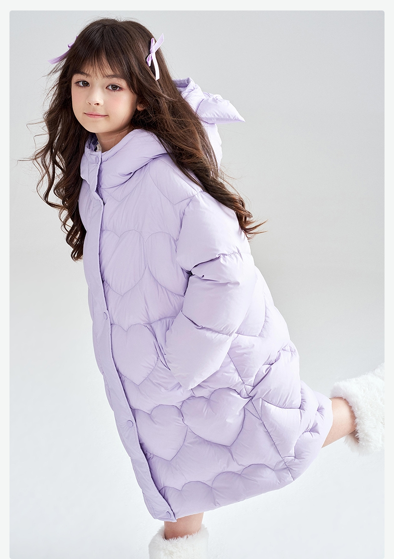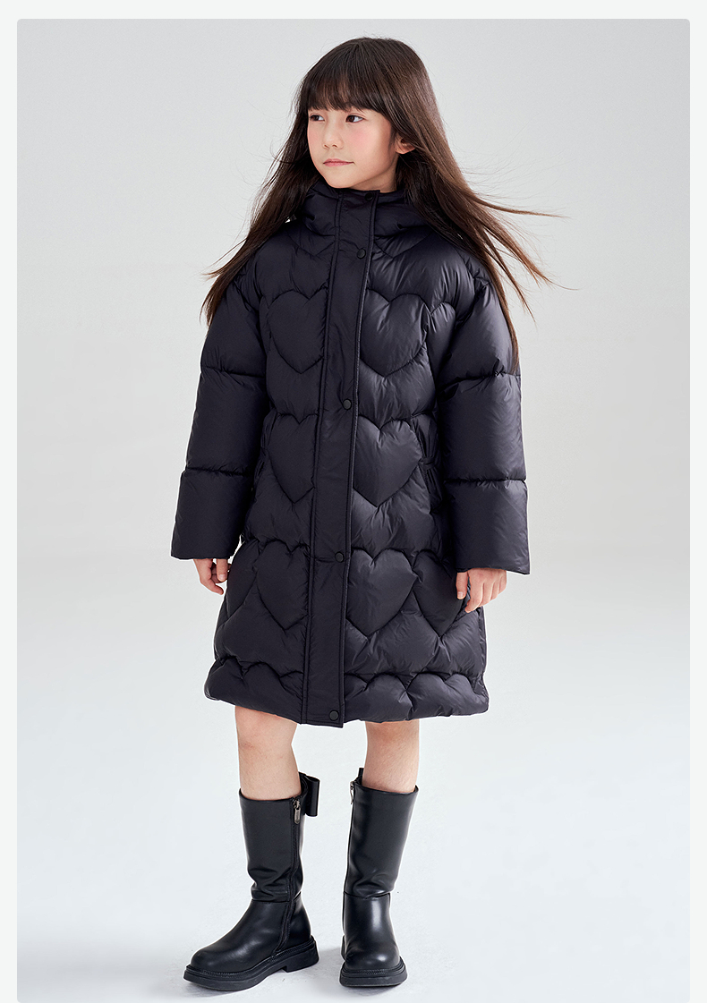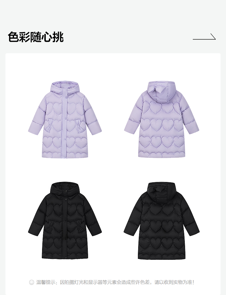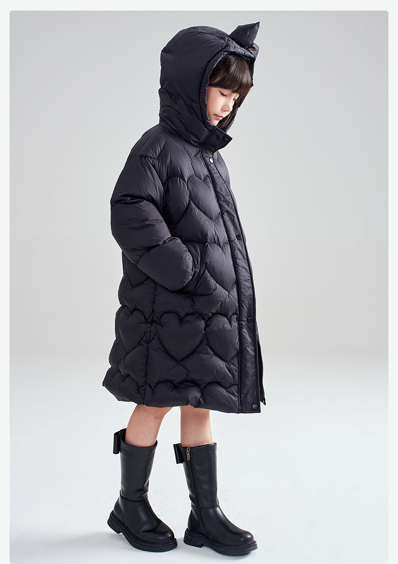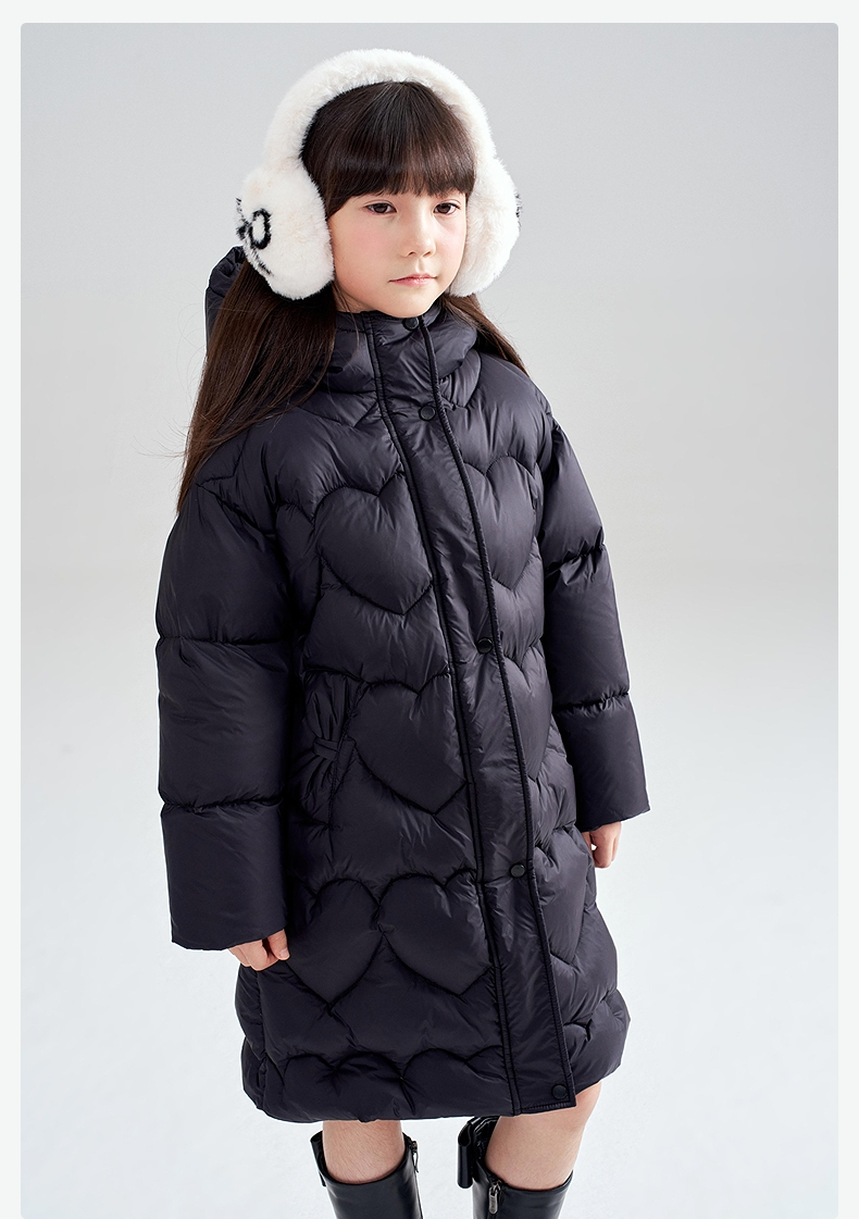 笛莎Deesha 2025冬季女童甜美蝴蝶结抗菌绒三防加长款羽绒服