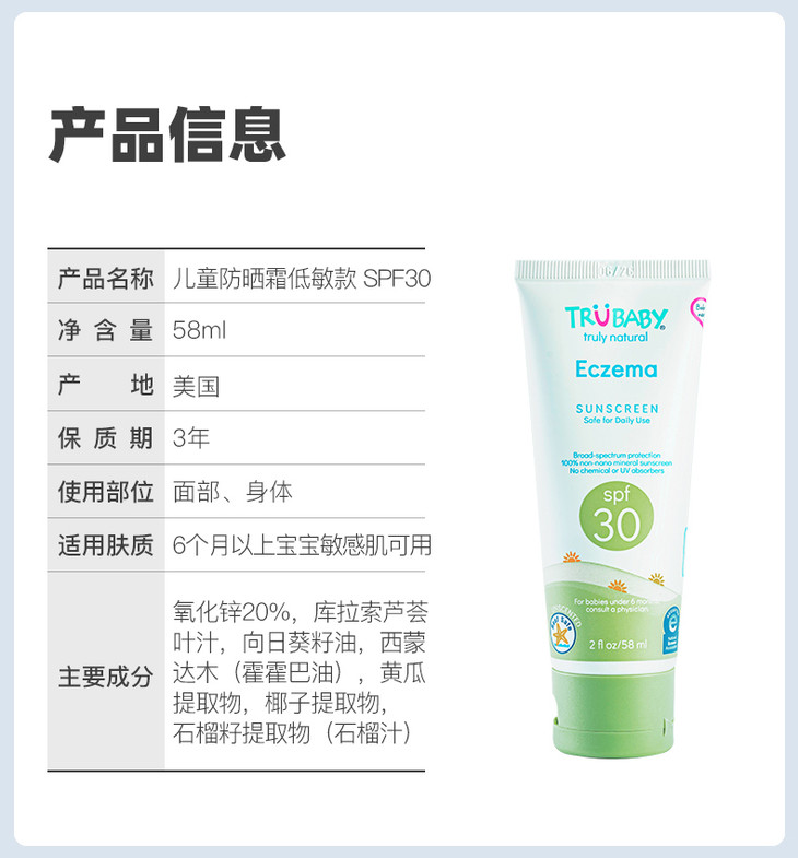 【9月16号23:59截团】TruKid小绿伞敏感肌款/小蓝管运动防水款,SPF30+ 58ml-效期到2026年6月/7月,介意慎拍!
