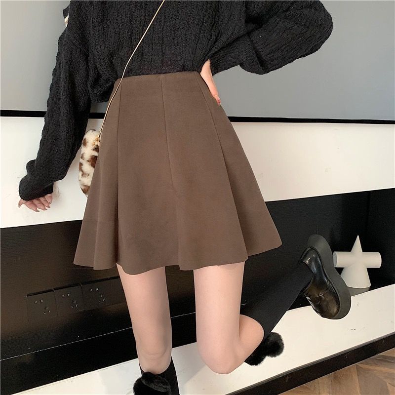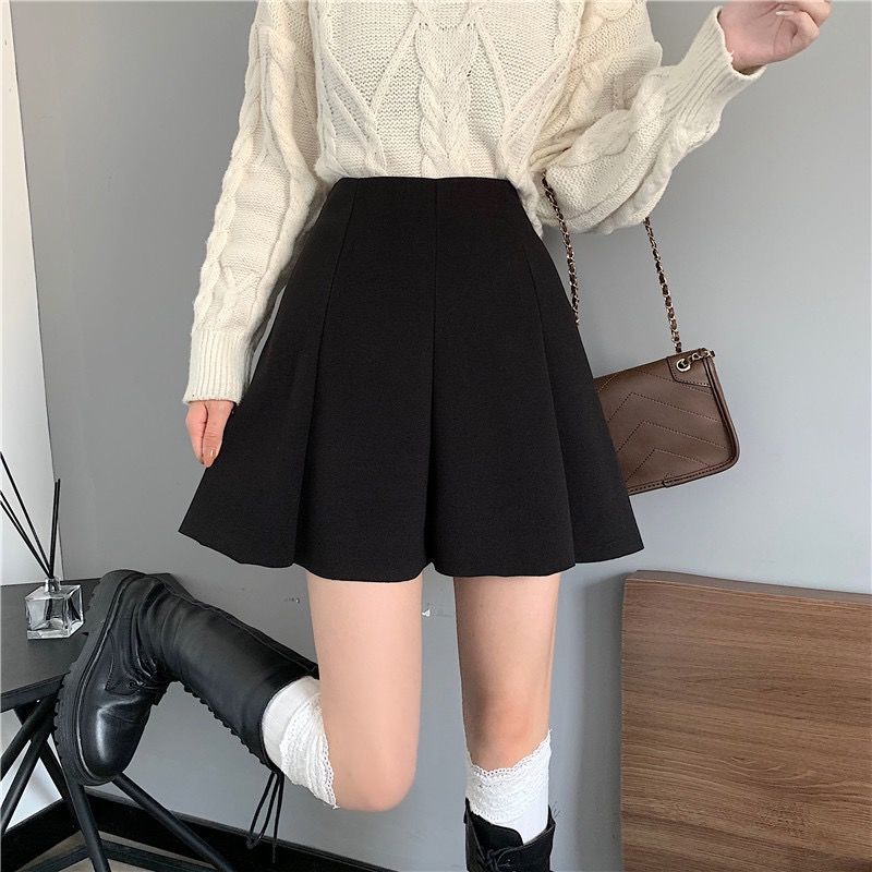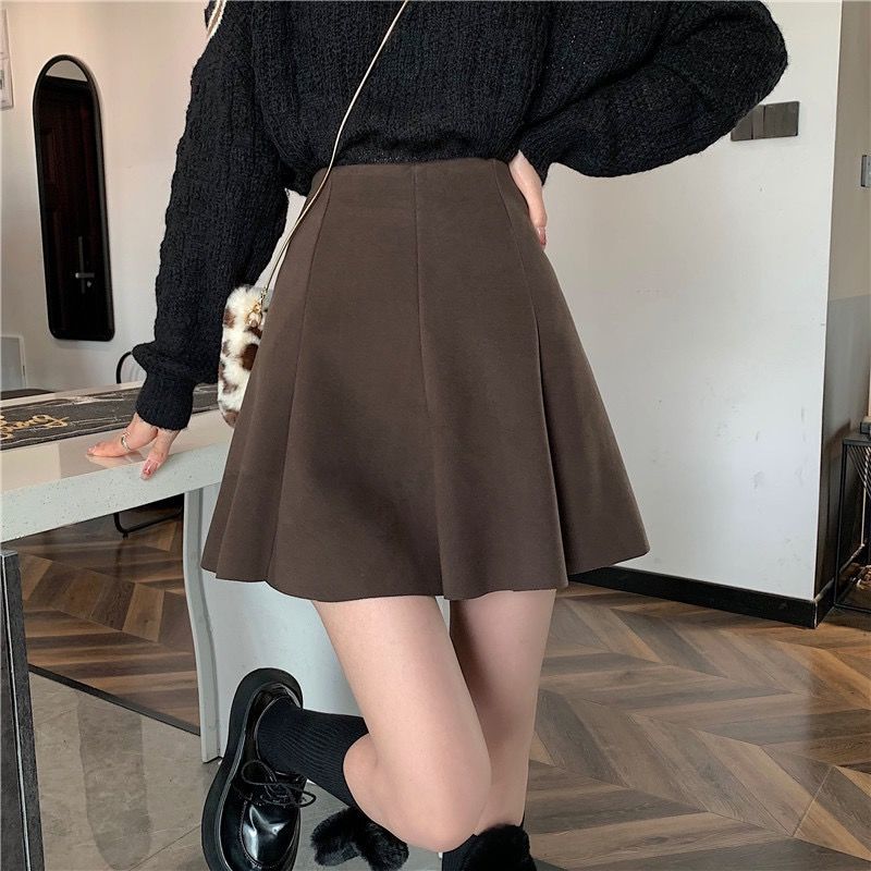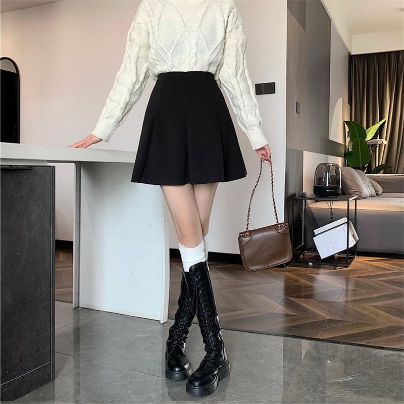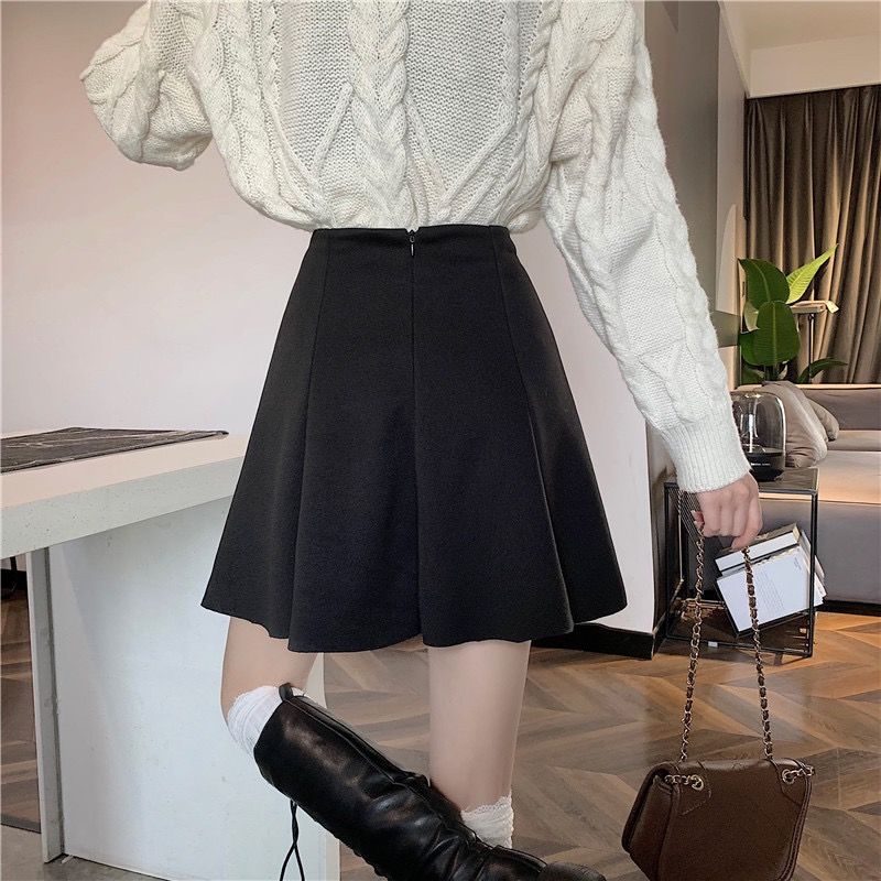 春夏新款【设计感毛呢半身裙】微胖mm高腰a字包臀短裙 大码显瘦小黑裙