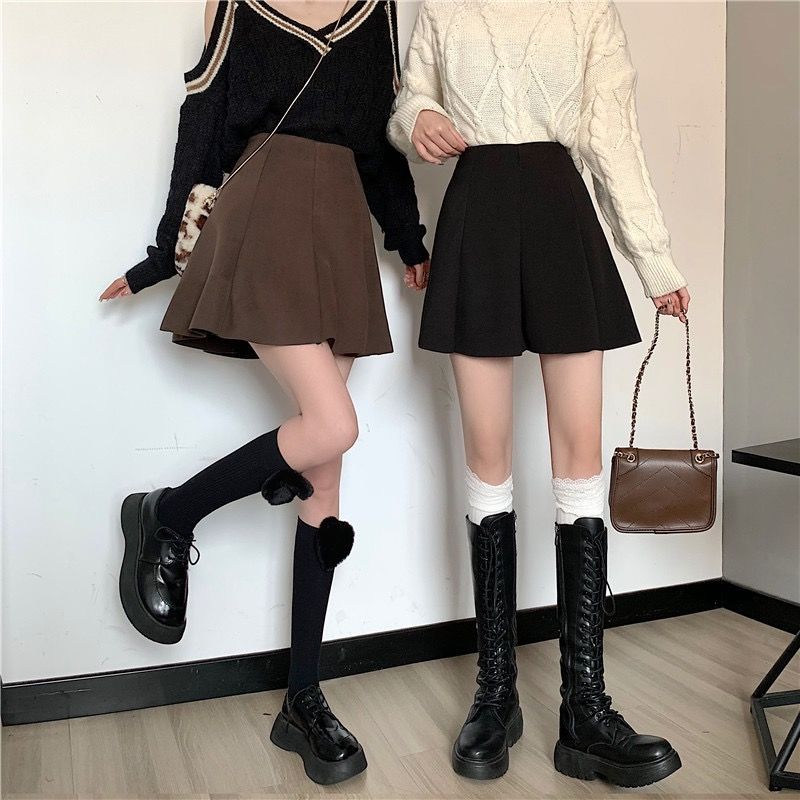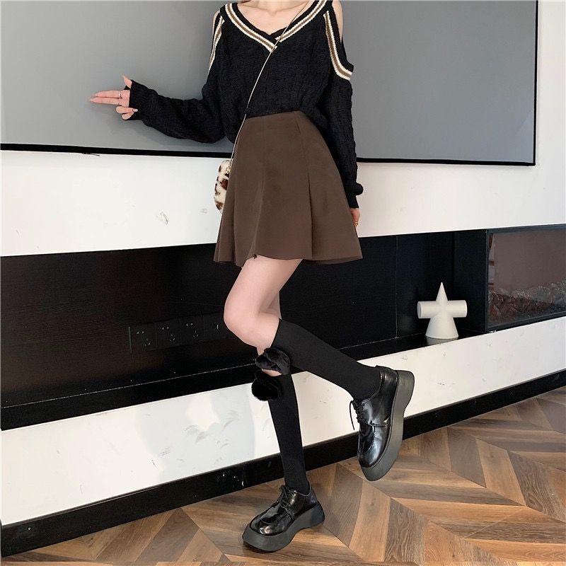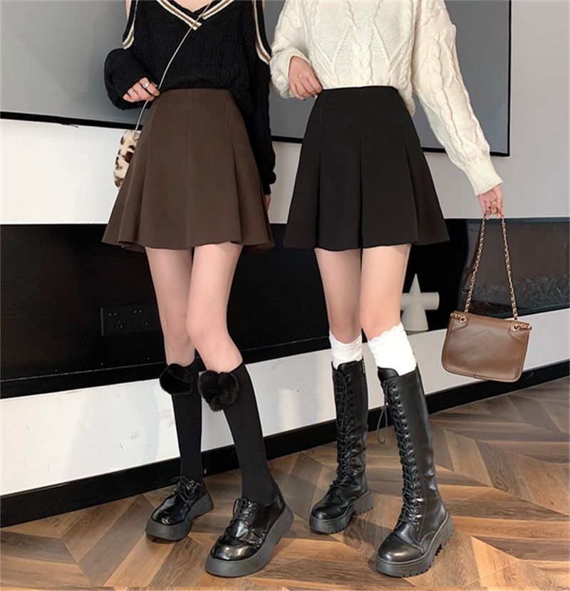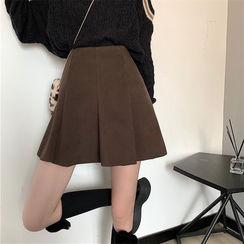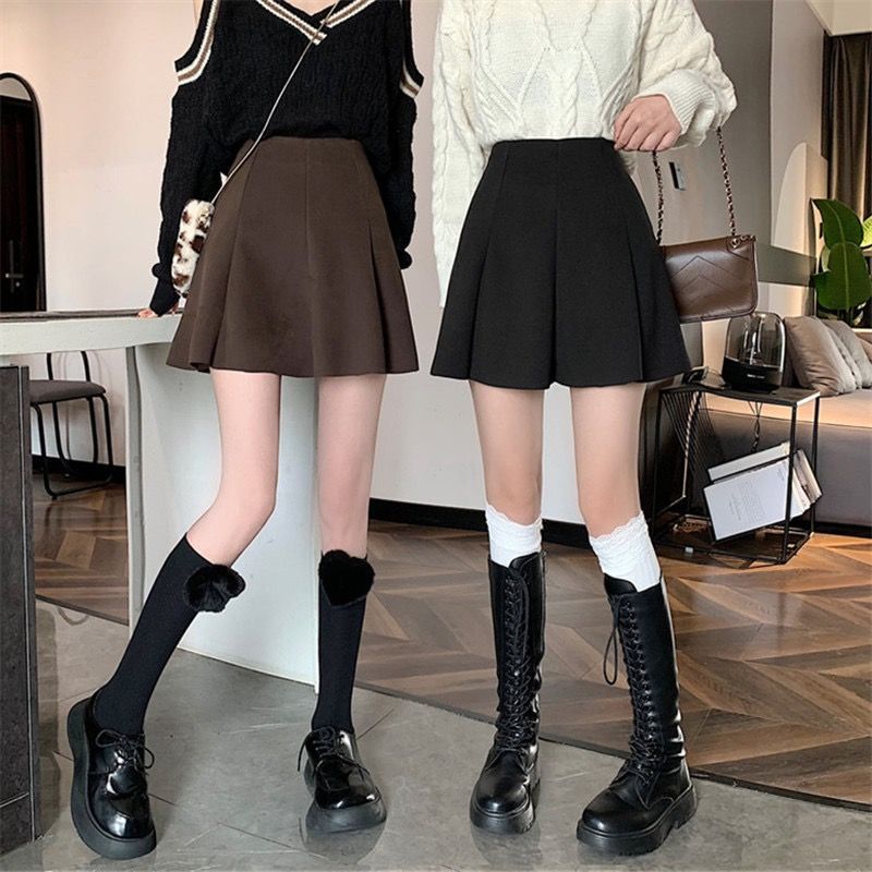 春夏新款【设计感毛呢半身裙】微胖mm高腰a字包臀短裙 大码显瘦小黑裙
