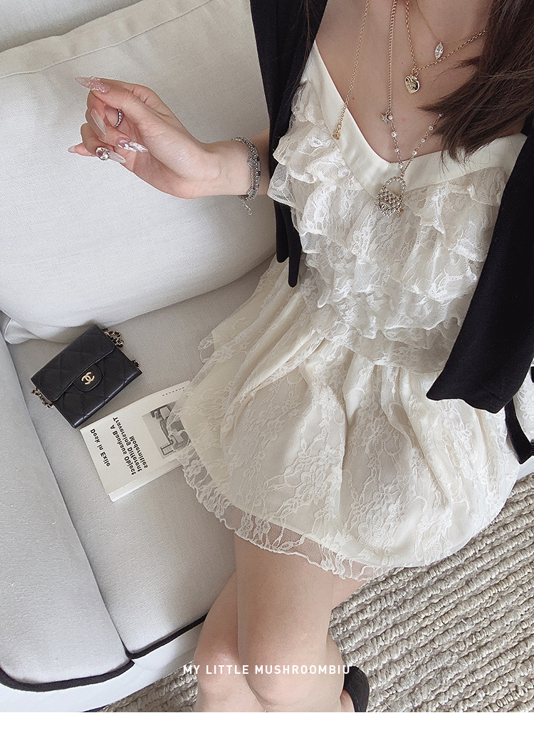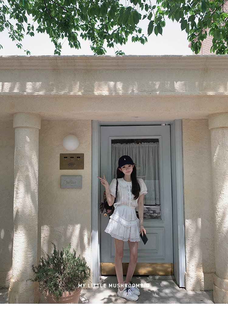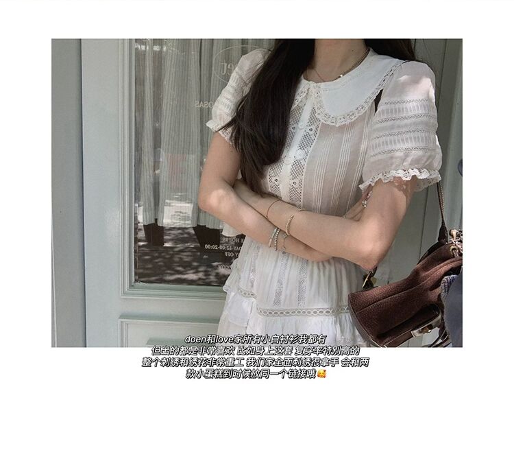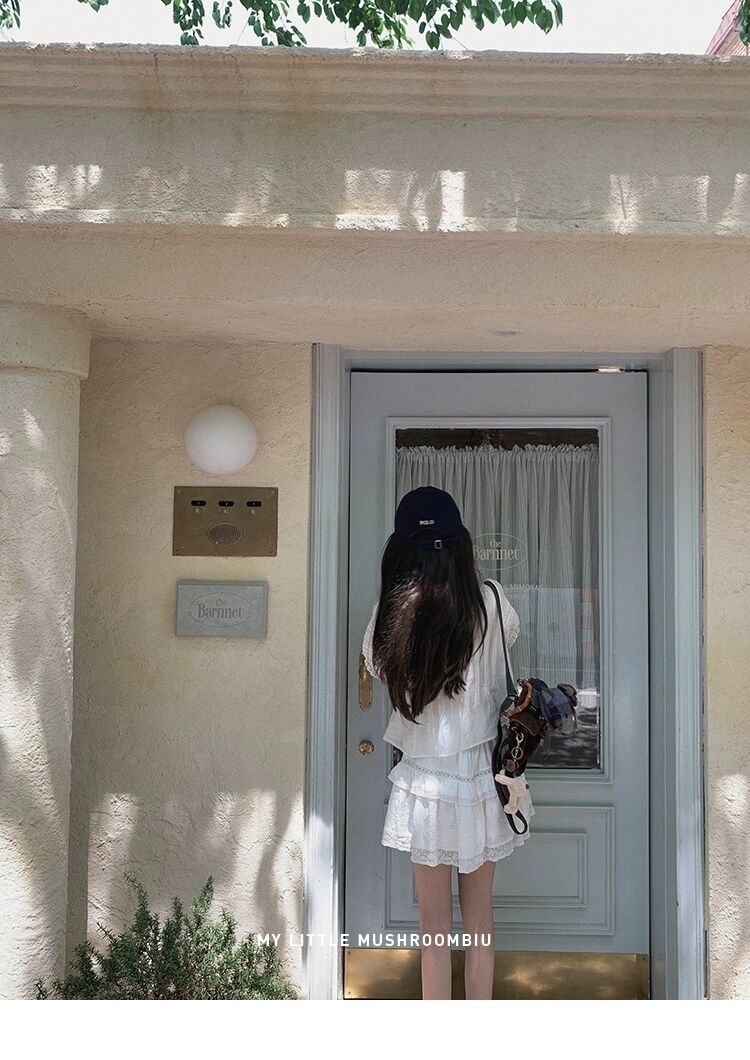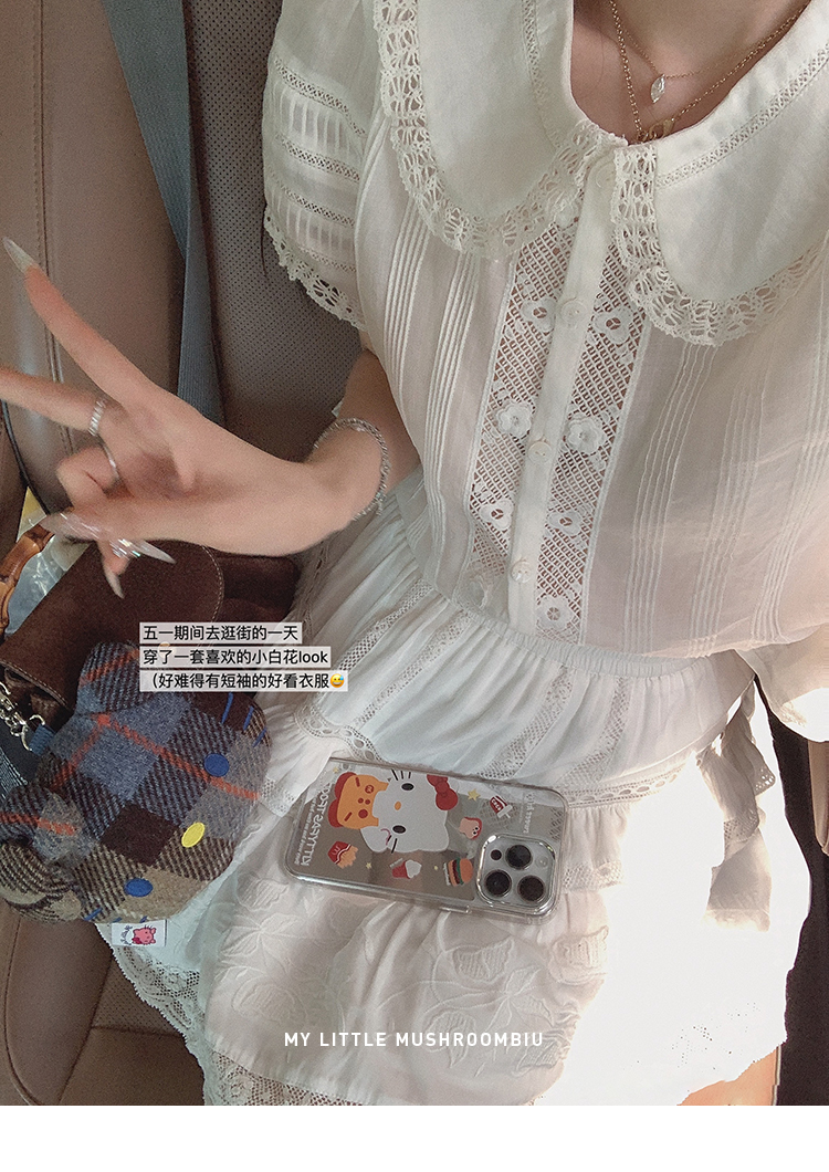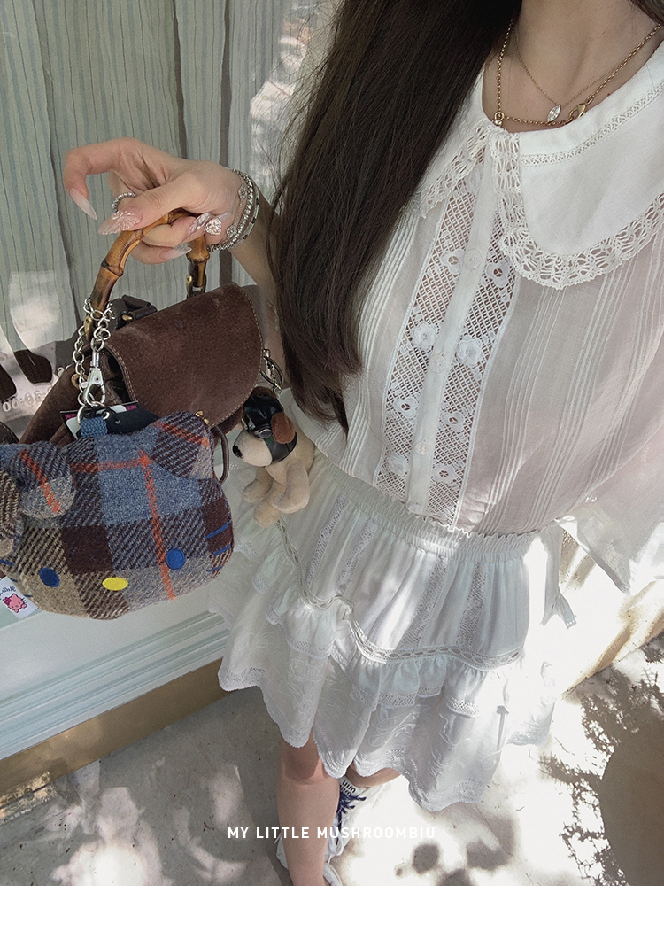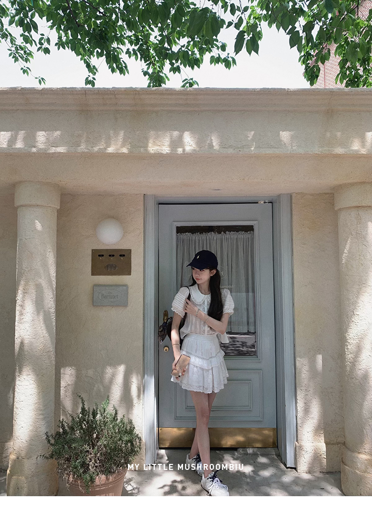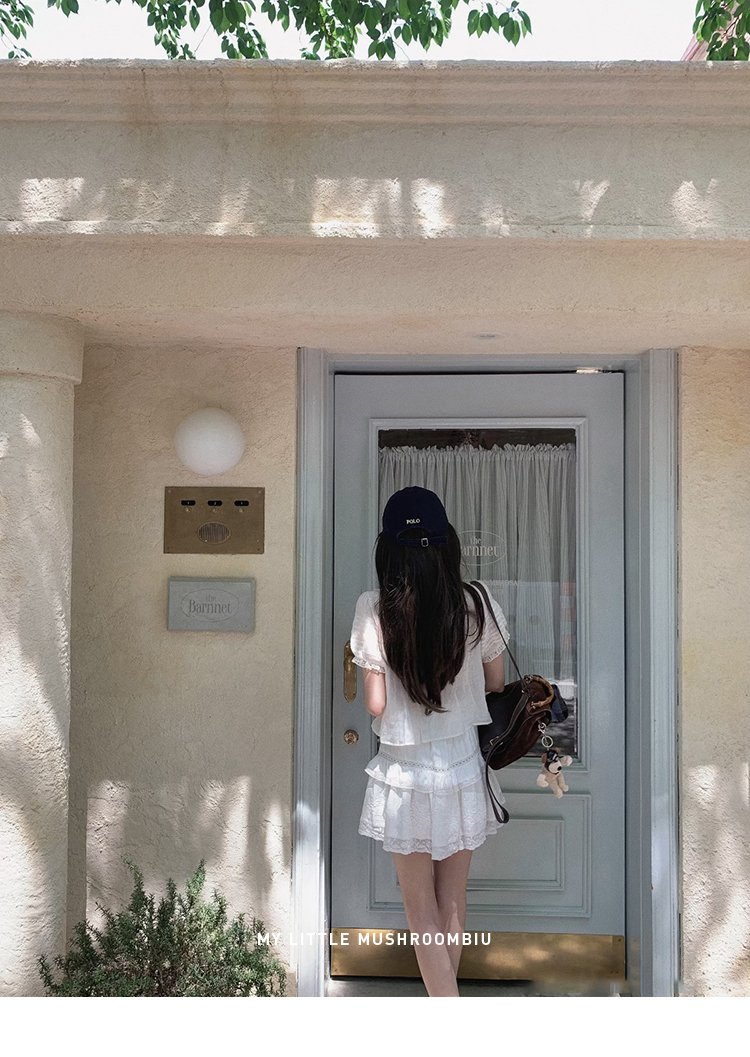 金蘑菇菇 小白花半裙 白色蕾丝高腰A字短裙女温柔风显瘦小个子半身裙