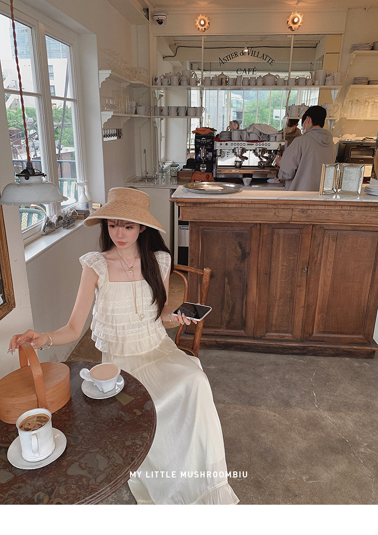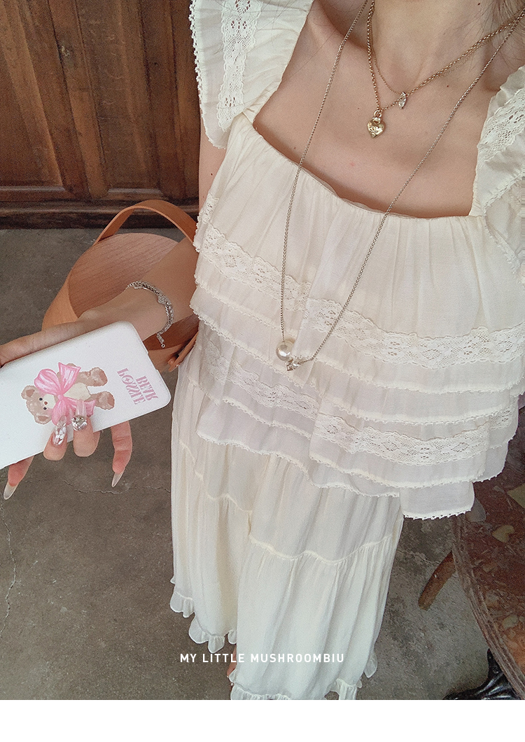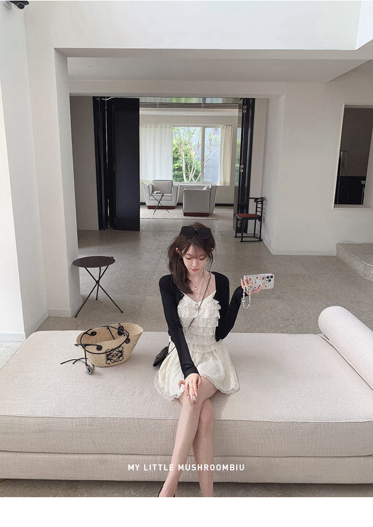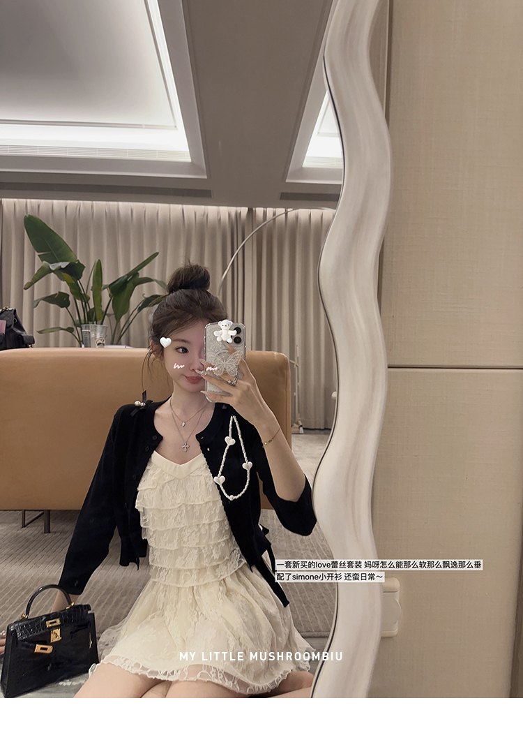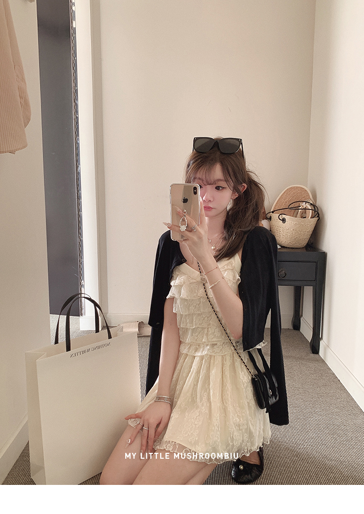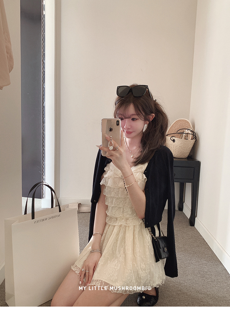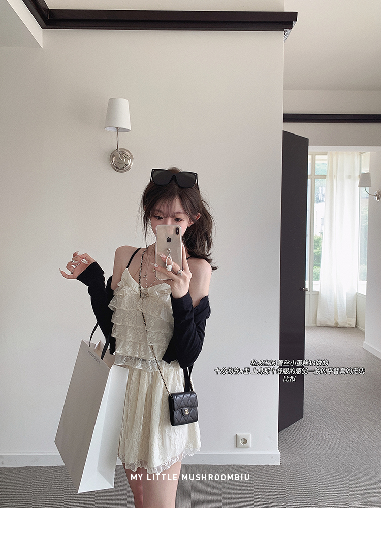 金蘑菇菇 小白花半裙 白色蕾丝高腰A字短裙女温柔风显瘦小个子半身裙
