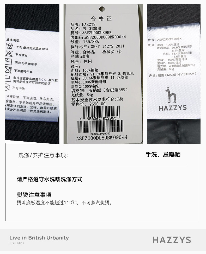 说明:这个太棒了!!码不全,有码就上!Hazzys 哈吉斯21年新款。韩国品牌,主打英伦风。备受都市新贵们追捧的品牌。专柜价格不便宜。风衣外套三四千,羽绒服四五千。