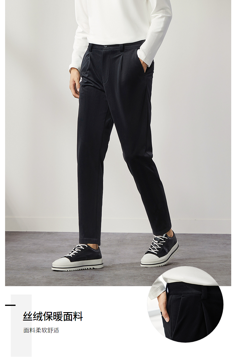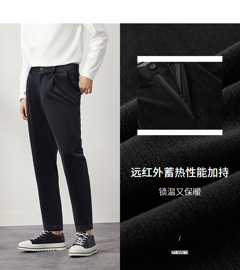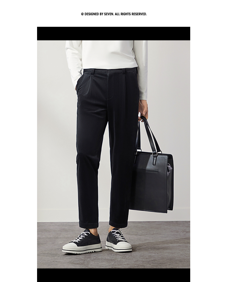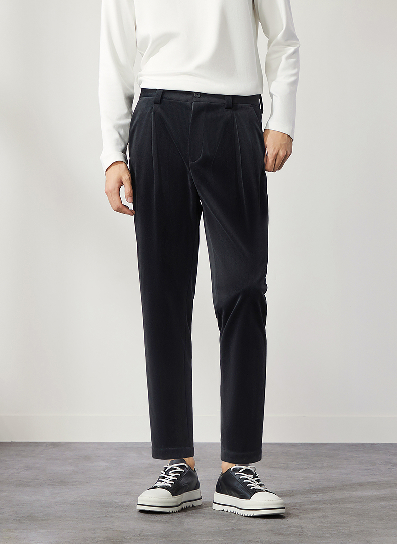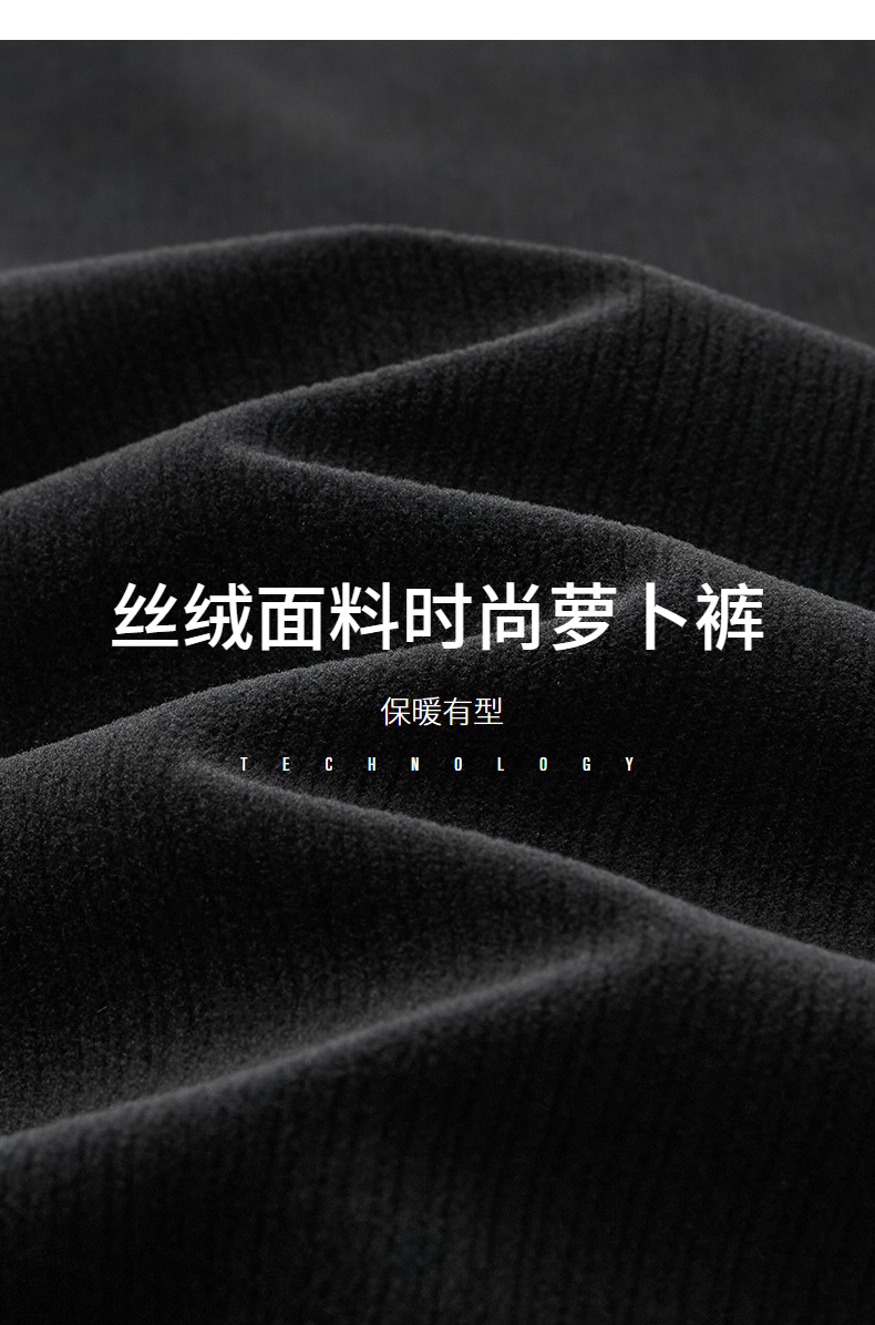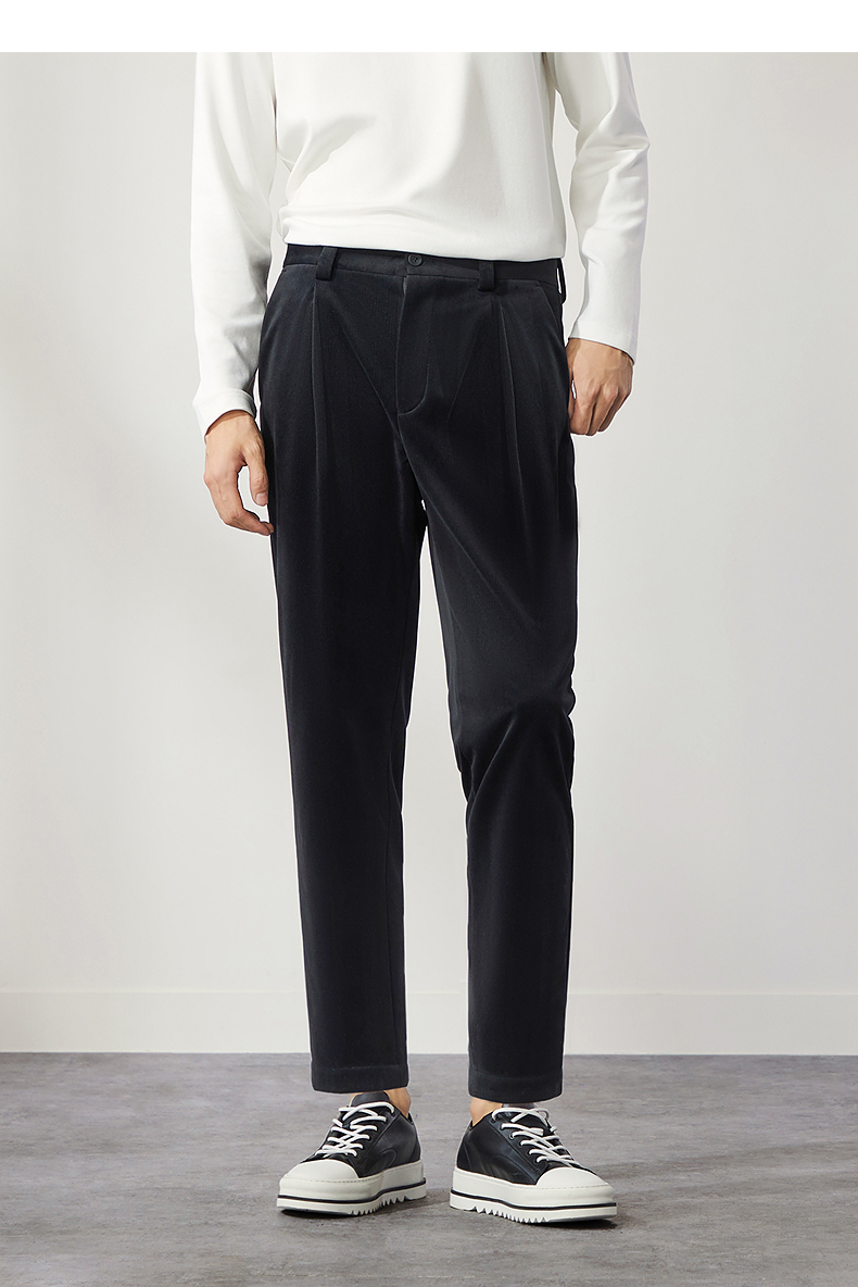 柒牌男装九分裤男锥形休闲裤2024秋冬新款时尚百搭黑色丝绒萝卜裤 127H72460