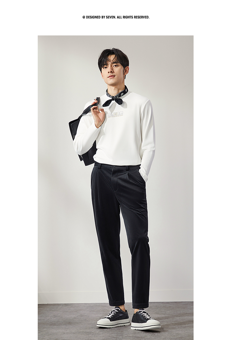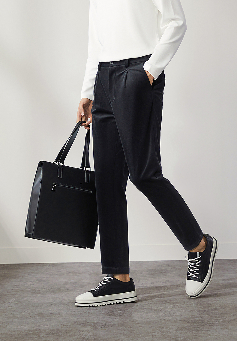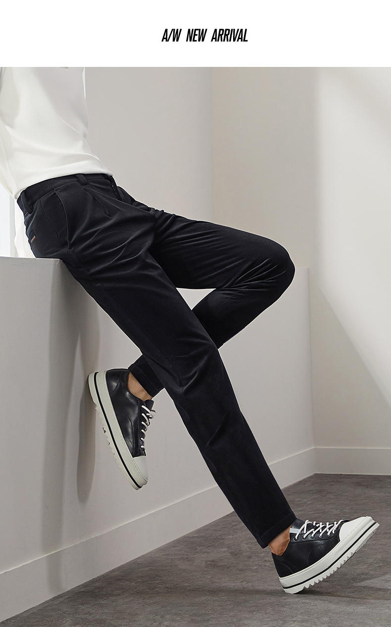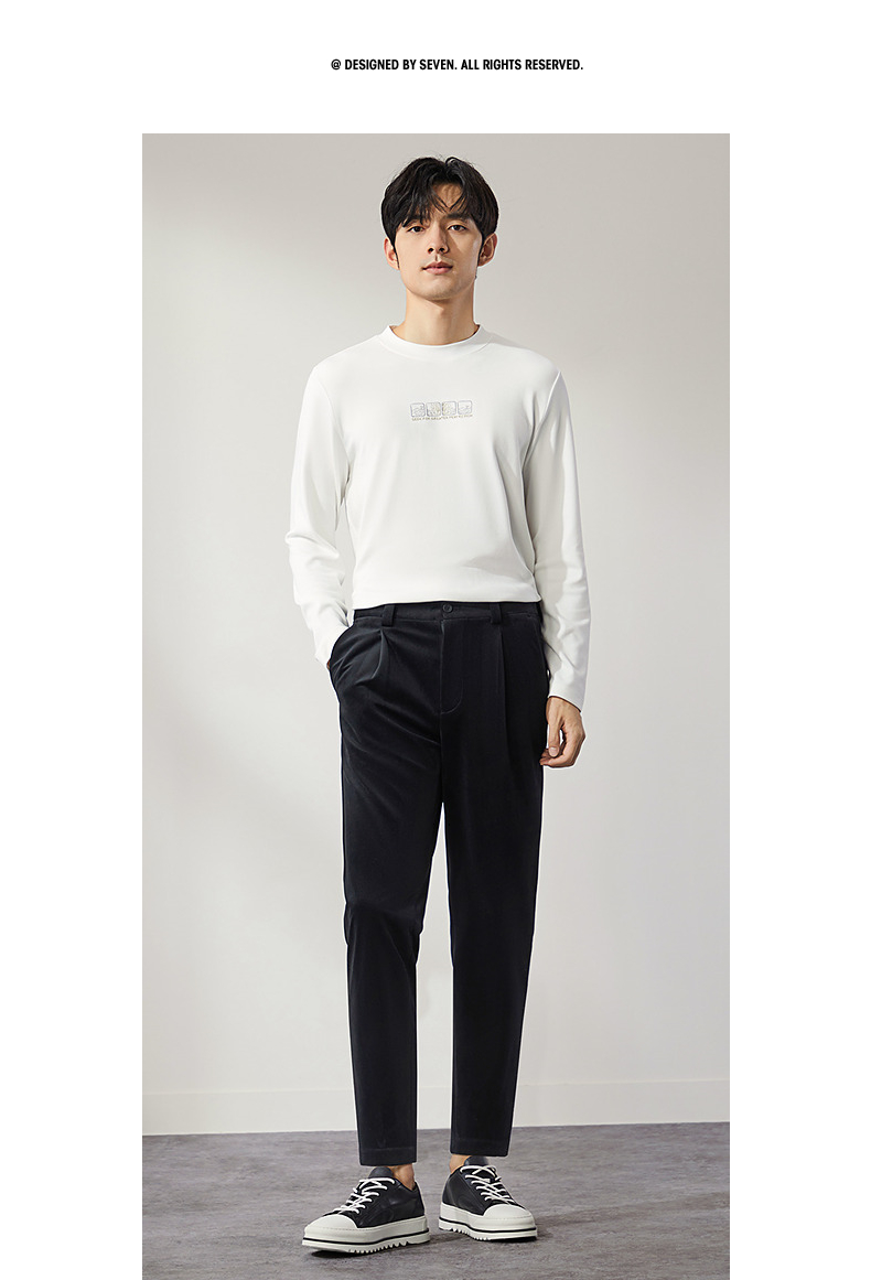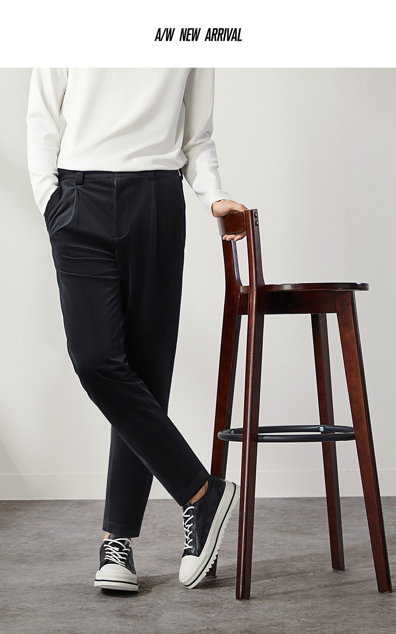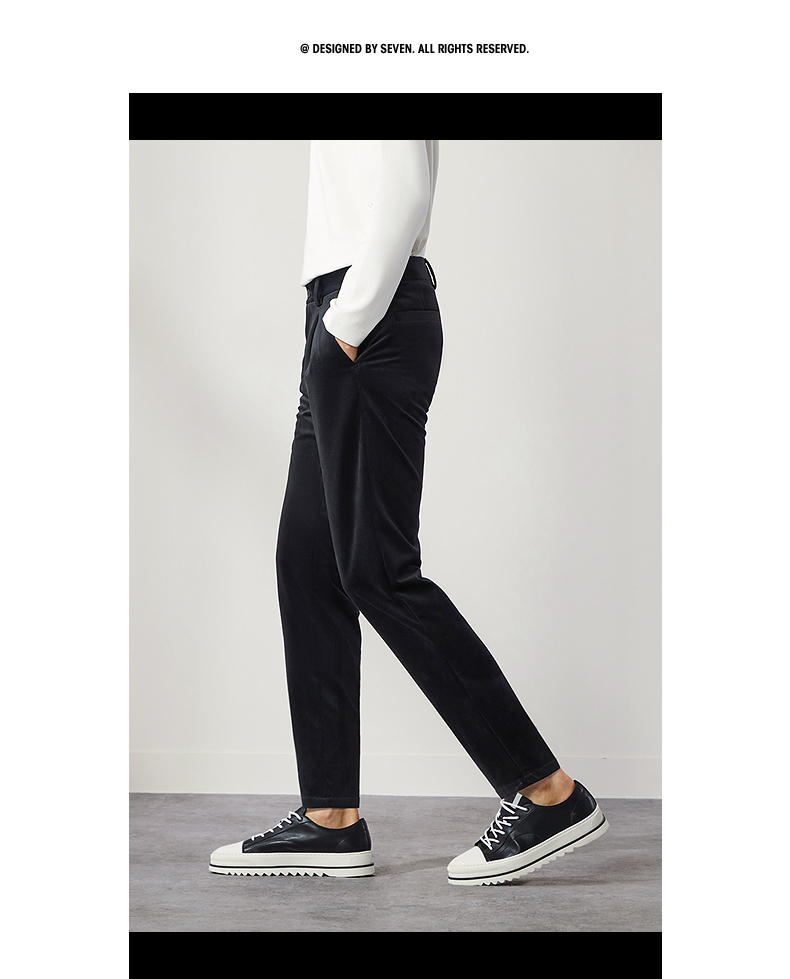 柒牌男装九分裤男锥形休闲裤2024秋冬新款时尚百搭黑色丝绒萝卜裤 127H72460