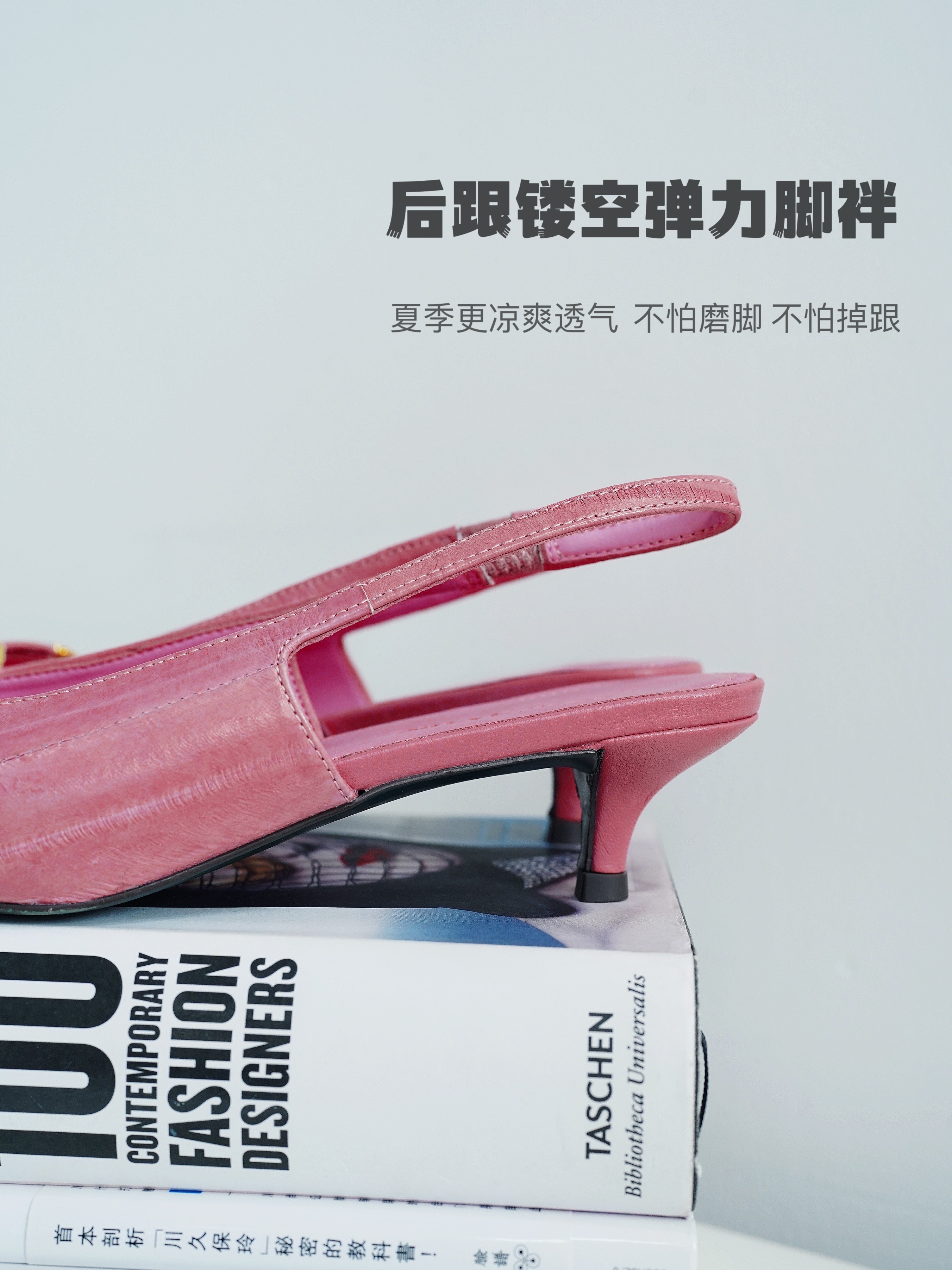 后侧镂空设计,夏季更凉爽,后侧脚袢具有一小截松紧弹力锻,包容我们的脚型,走起来更跟脚,也更舒适,同时这截弹力缎很隐形,不注意看就看不出,比起传统的扣袢更美观简洁!