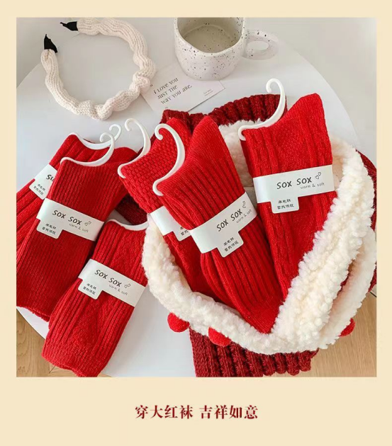 新年袜高端局 |【羊毛红色中筒袜】好运暴击💓 过年就要穿点不一样的‼️正愁不知道送什么新年礼物的,不如看看这个~ 精选优质面料,舒适细腻 新年氛围直接拉满! 蓬松弹力袜口,不束缚、不勒腿 立体袜身,细致缝合的袜尖不酪脚 已经开始期待过年啦!🧨