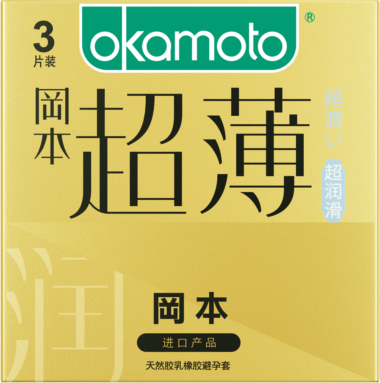 冈本001超薄男专用持久003玻尿酸高潮狼牙颗粒0.01mm超薄安全避孕套子 【润滑透薄】3只