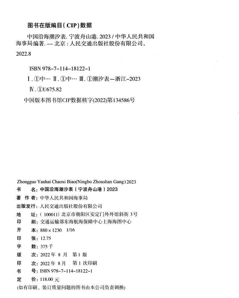 书名:中国沿海潮汐表(宁波舟山港)2023