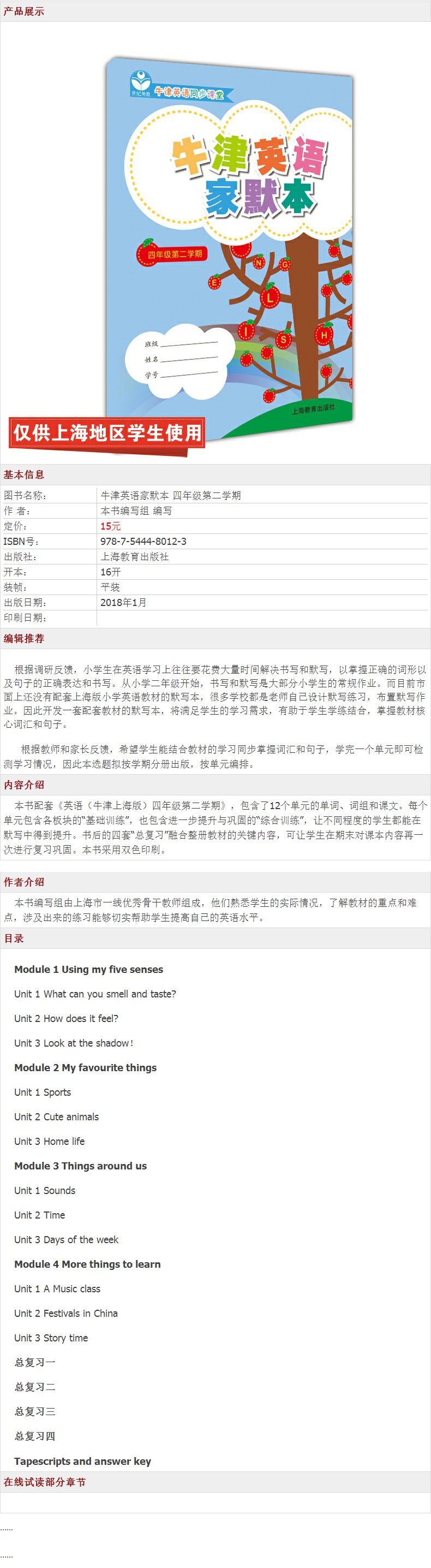 牛津英语家默本 四年级第二学期 牛津英语同步课堂 4年级下 四年级下第2学期 正版小学教辅教材 上海教育出版社 世纪外教