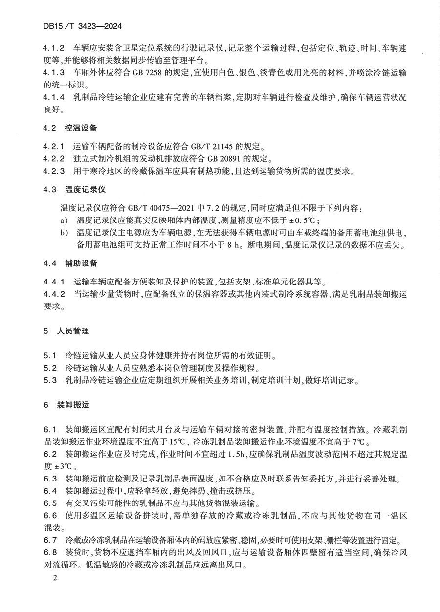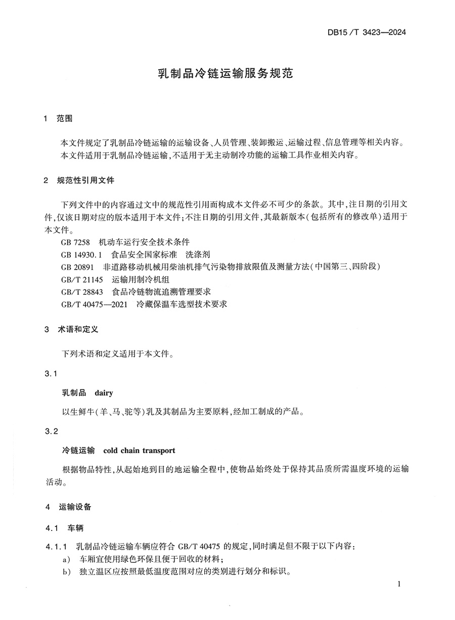 乳制品冷链运输服务规范(DB15/T 3423-2024)