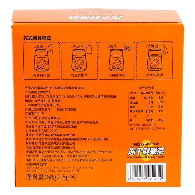 每鲜说冻干鲜果茶香橙凤梨多多60g(15g*4)/盒