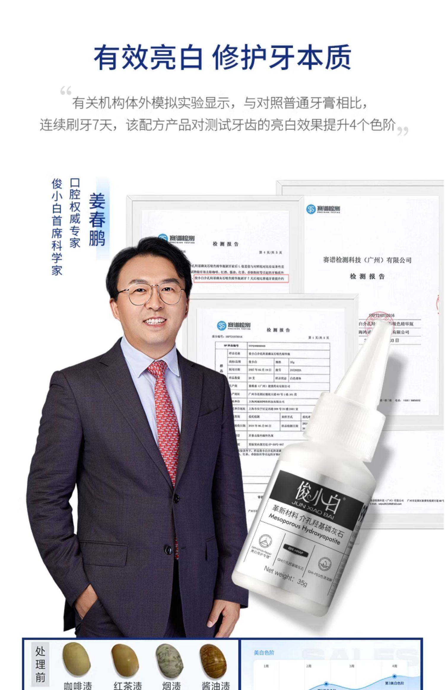 俊小白介孔羟基磷灰石美白吸色牙膏(白桃果味)35ml*3