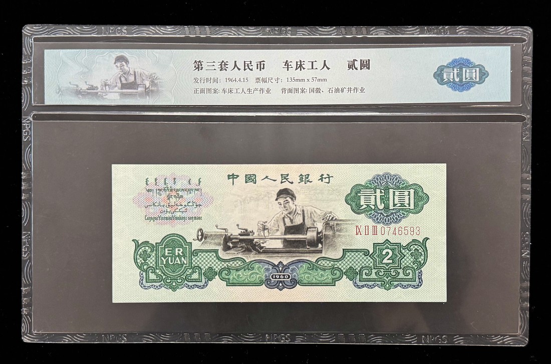 【中钞评级】第三套壹圆 满版五角星水印 64分
