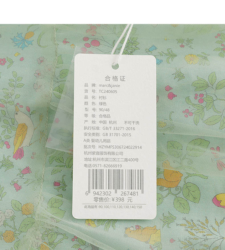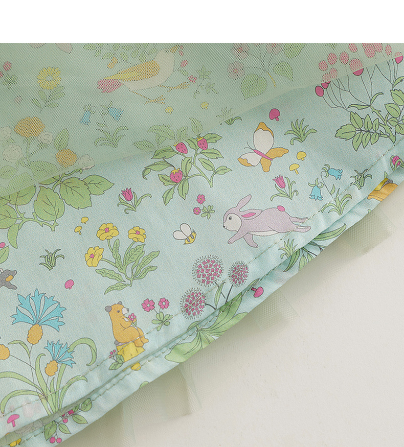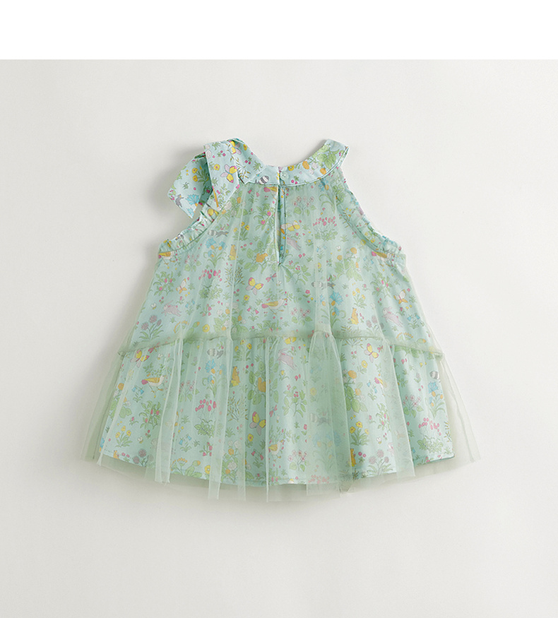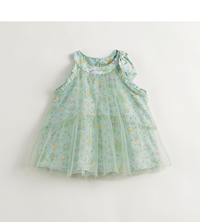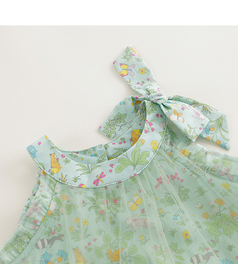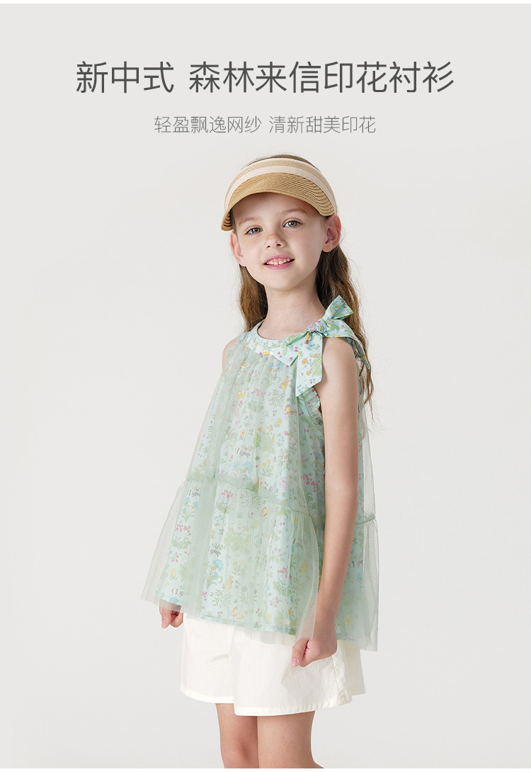 马克珍妮2024年夏装 女童森林来信印花蝴蝶结网纱挂脖衬衫 240605