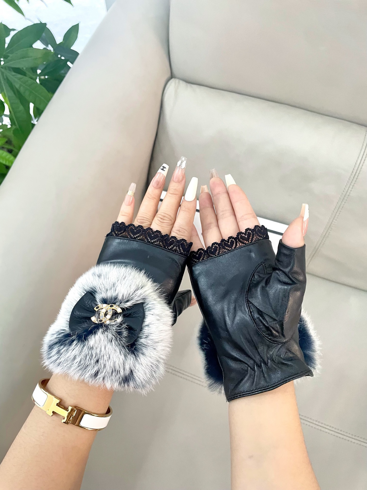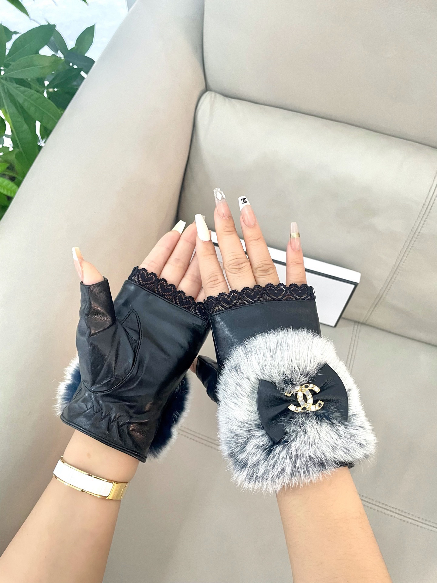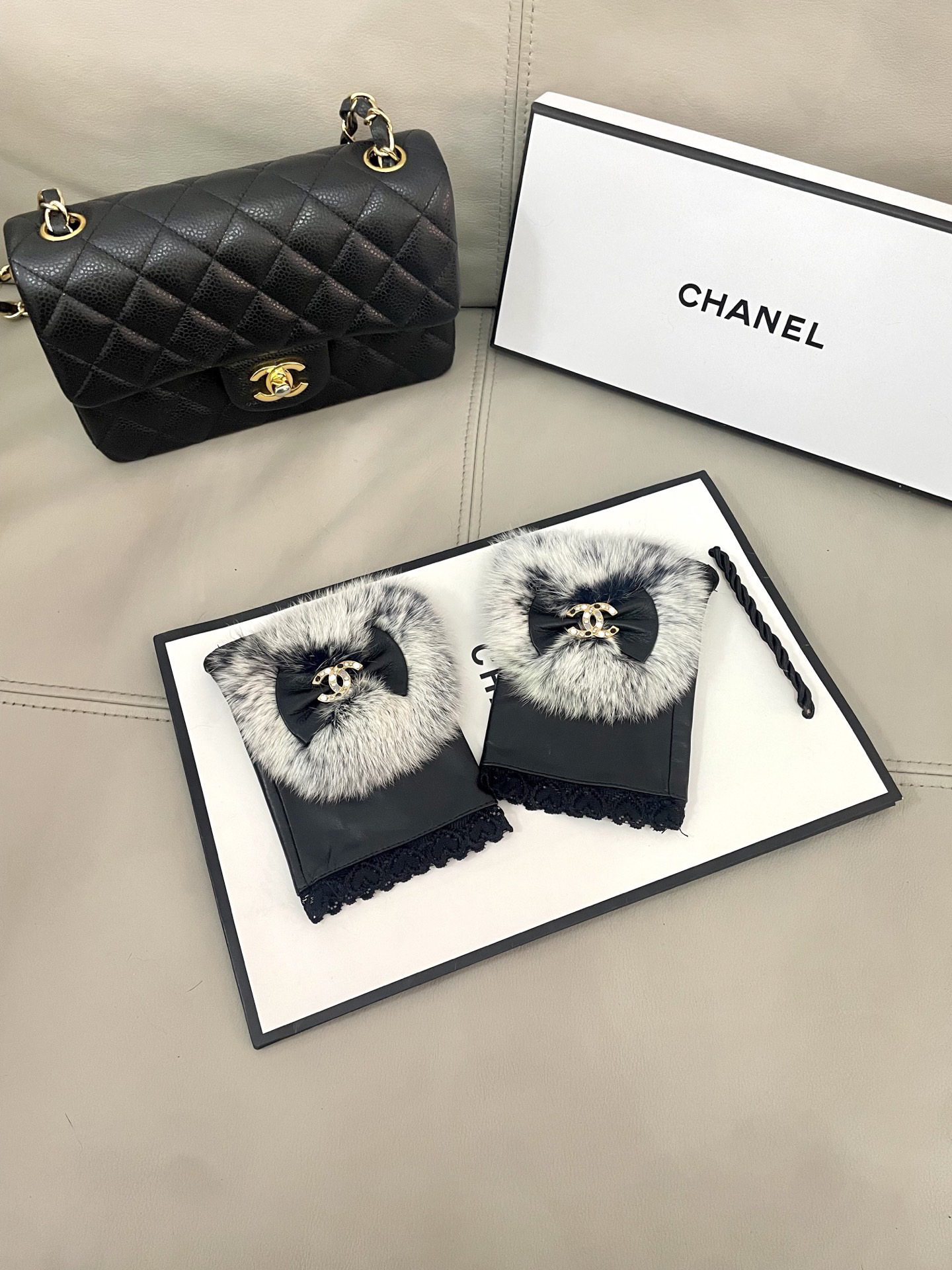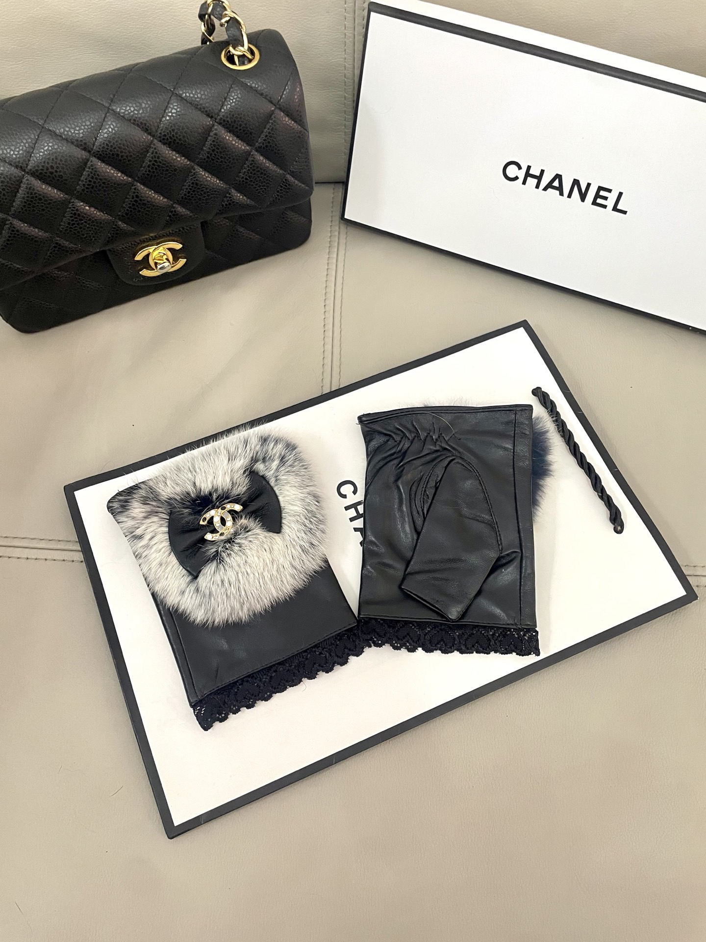 秋冬特惠💰240 香奈儿女士新款高档毛呢短款手套选用进口小羊皮 内里羊丝里 皮质光泽鲜亮饱满 柔软细腻 手感一流 认准进口羊皮特有手感 原版五金 任何细节都不放过 码数: L