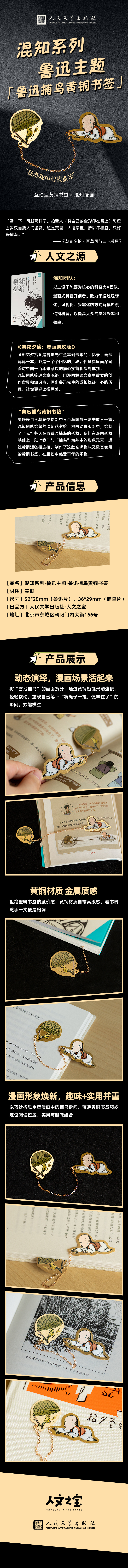 【人文之宝】混知系列·鲁迅主题·鲁迅捕鸟黄铜书签