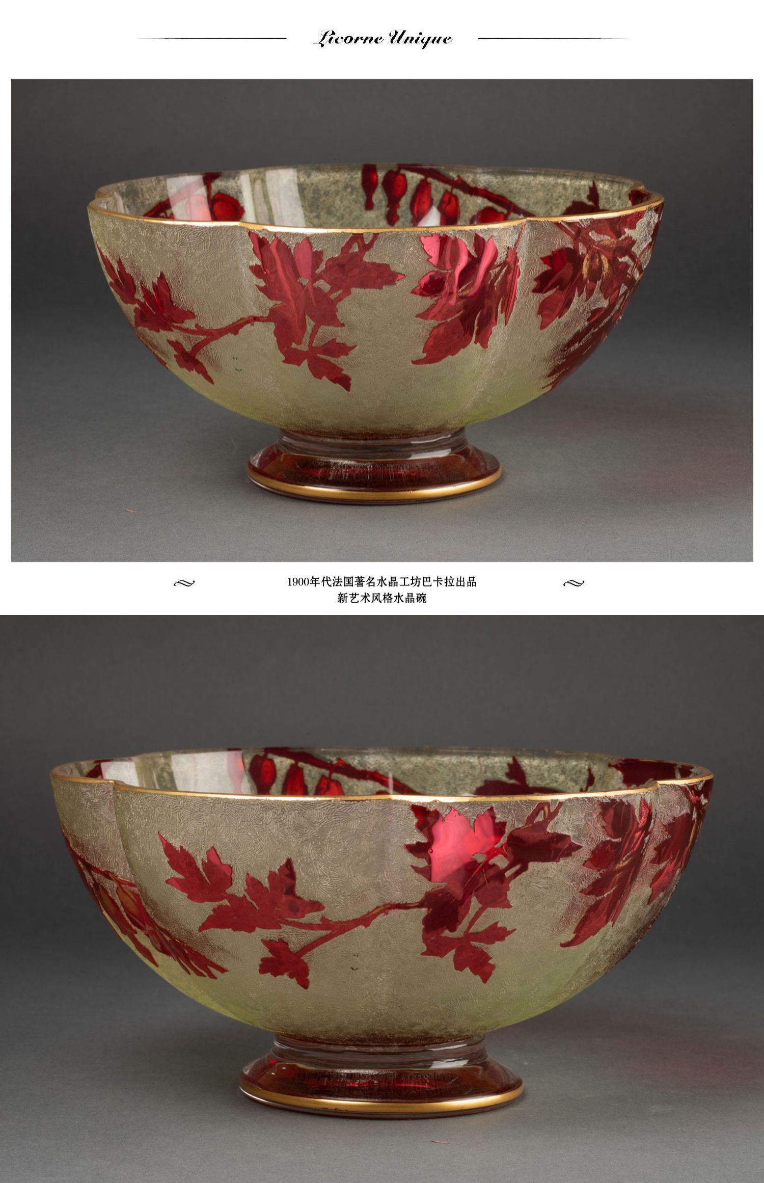 独角鹿西洋古董装饰摆件法国著名水晶工坊巴卡拉新艺术风格水晶碗