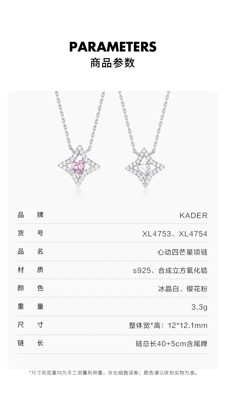 卡蒂罗/KADER 心动四芒星项链 925银轻奢时尚璀璨吸睛可调节锁骨链 浪漫温柔闪耀夺目配饰 妈妈 女友 礼盒