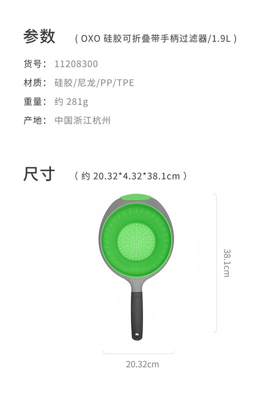 OXO 硅胶可折叠带手柄过滤器 1.9L OGGC11208300