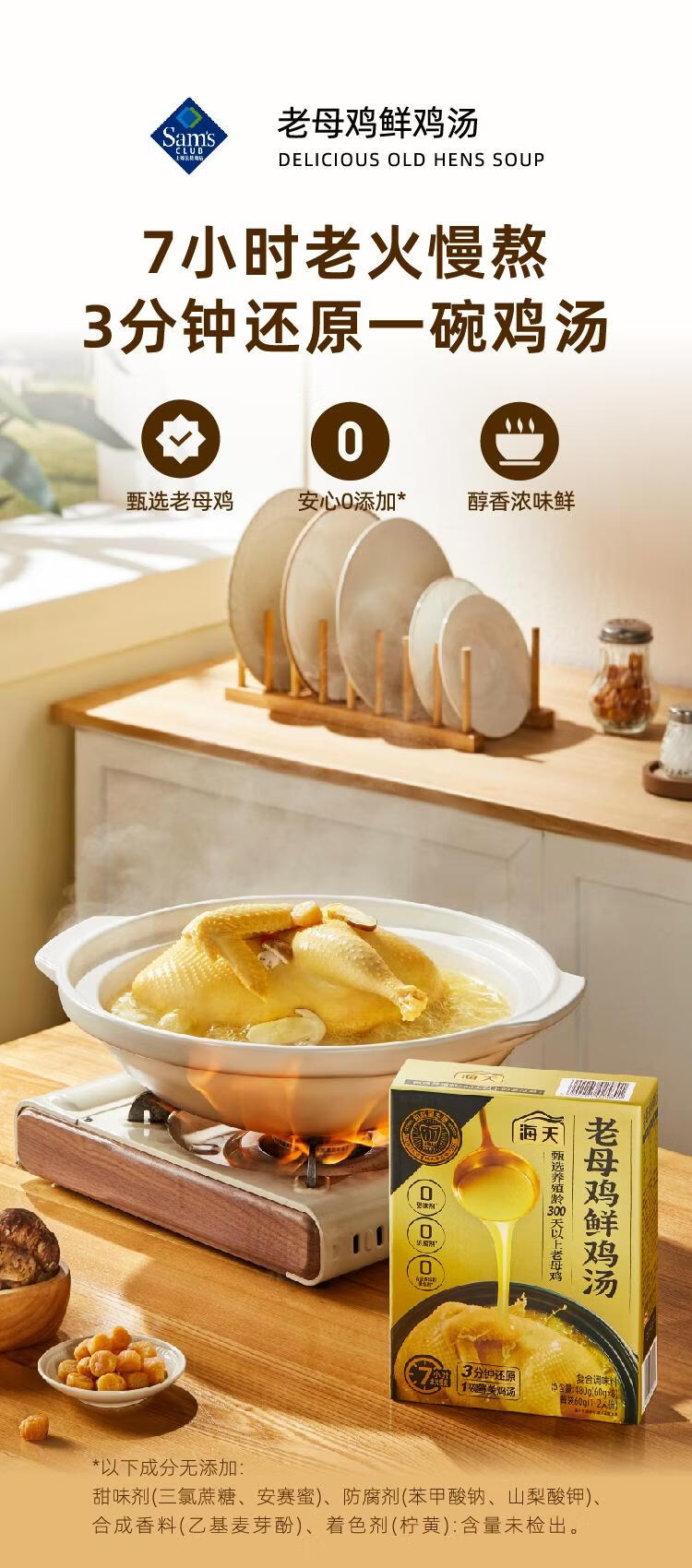 【山姆限定】海天 老母鸡鲜鸡汤 1-2人份 60g/袋