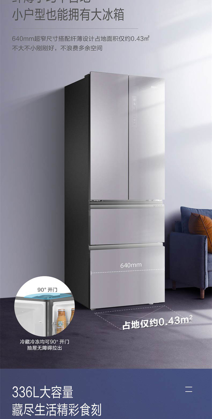 海尔(haier)冰箱 336升多门法式四门冰箱 风冷无霜双变频 一级能效母婴专区家用冰箱BCD-336WBCM