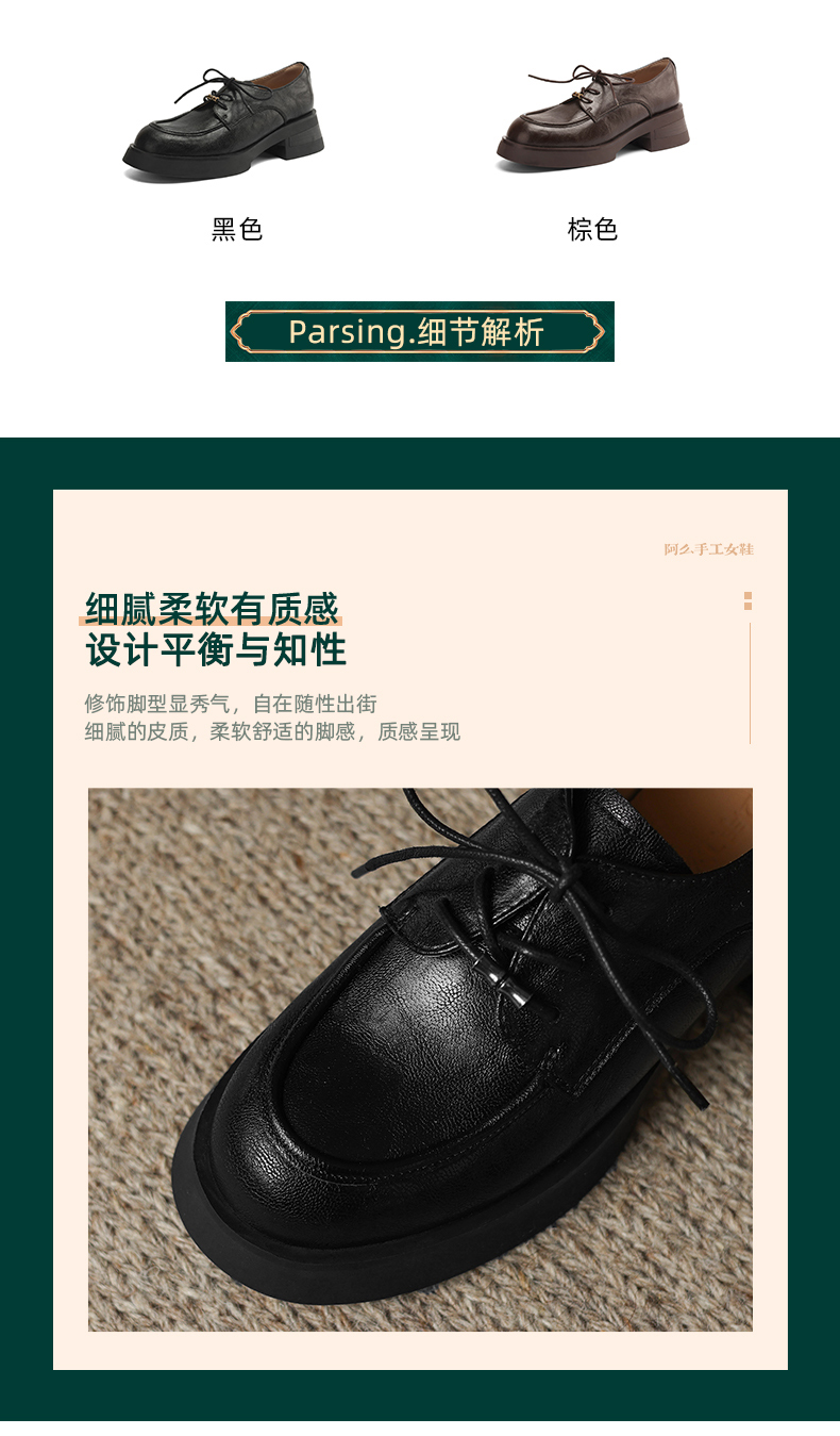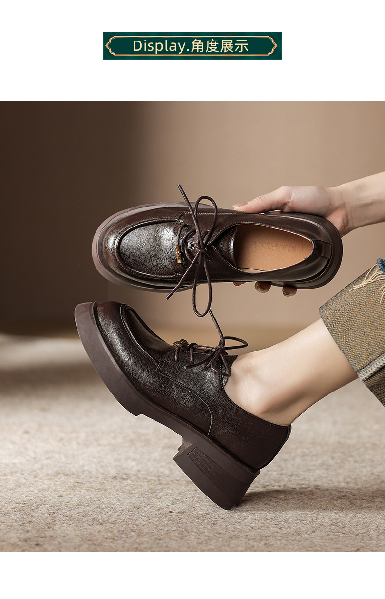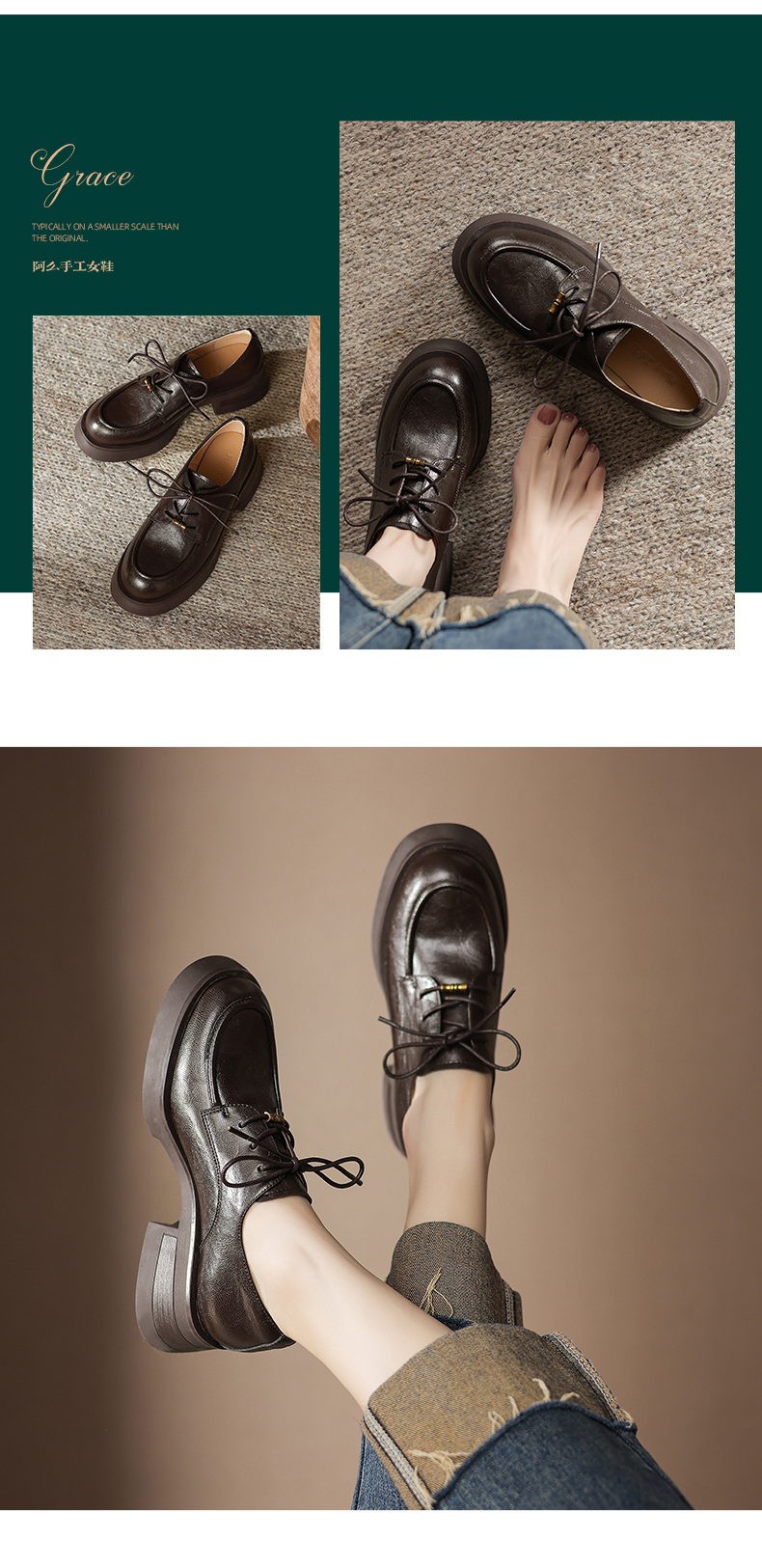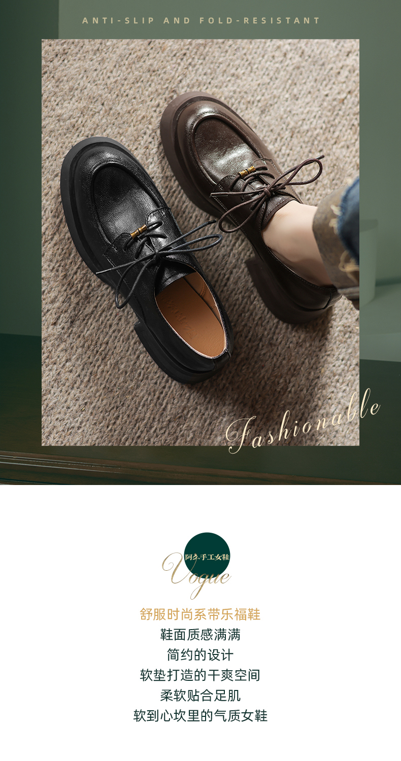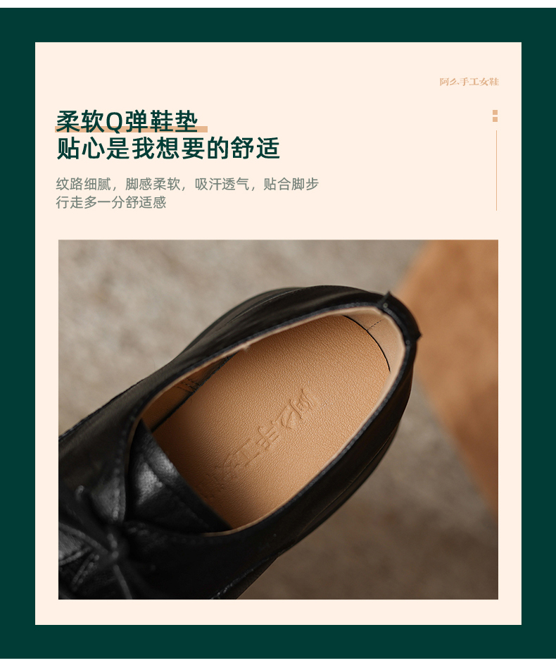 阿么手工女鞋复古英伦风系带小皮鞋春季5CM厚底日常百搭真皮单鞋