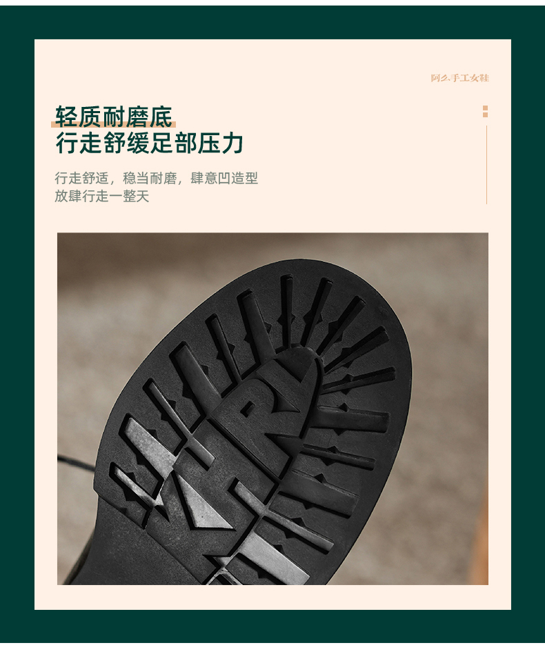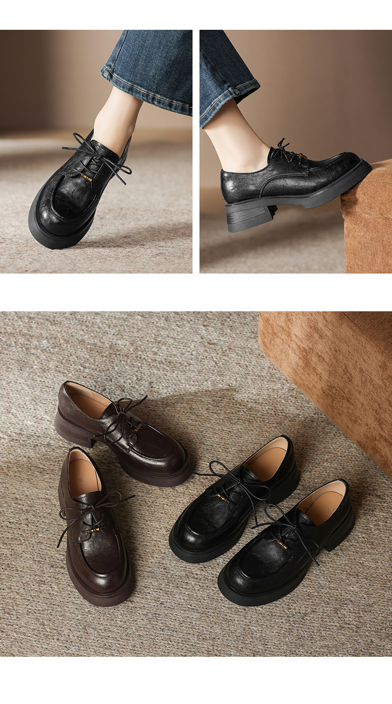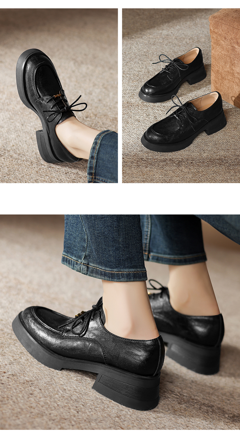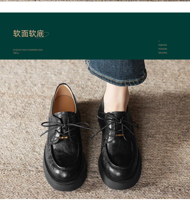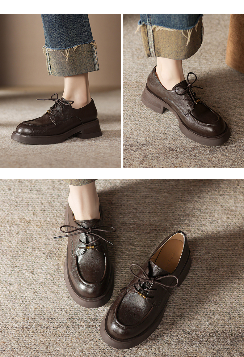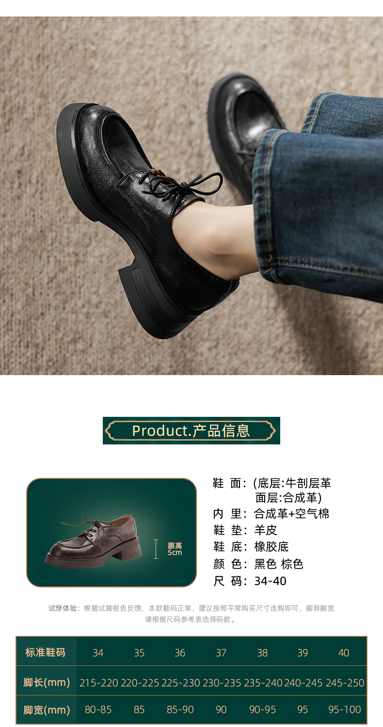 阿么手工女鞋复古英伦风系带小皮鞋春季5CM厚底日常百搭真皮单鞋