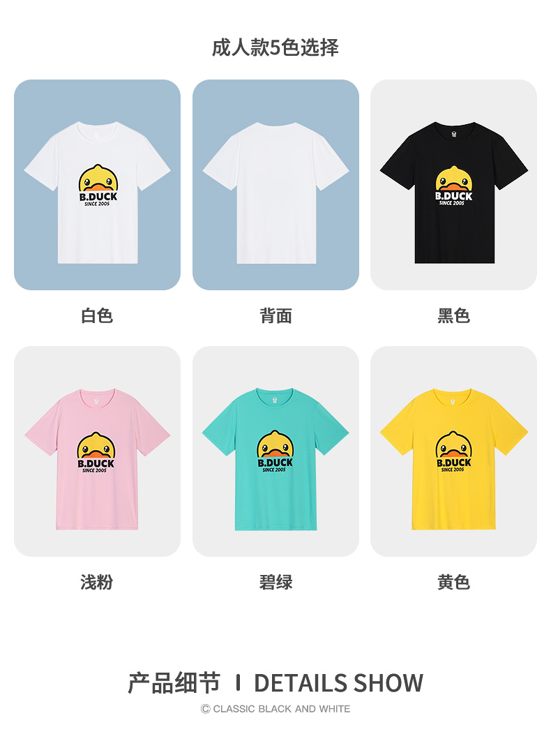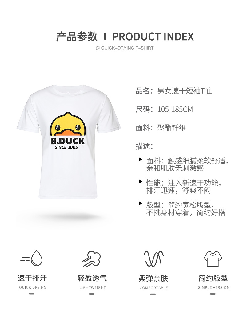 B.Duck小黄鸭亲子装夏季速干衣短袖T恤105-185码 BF2211501A