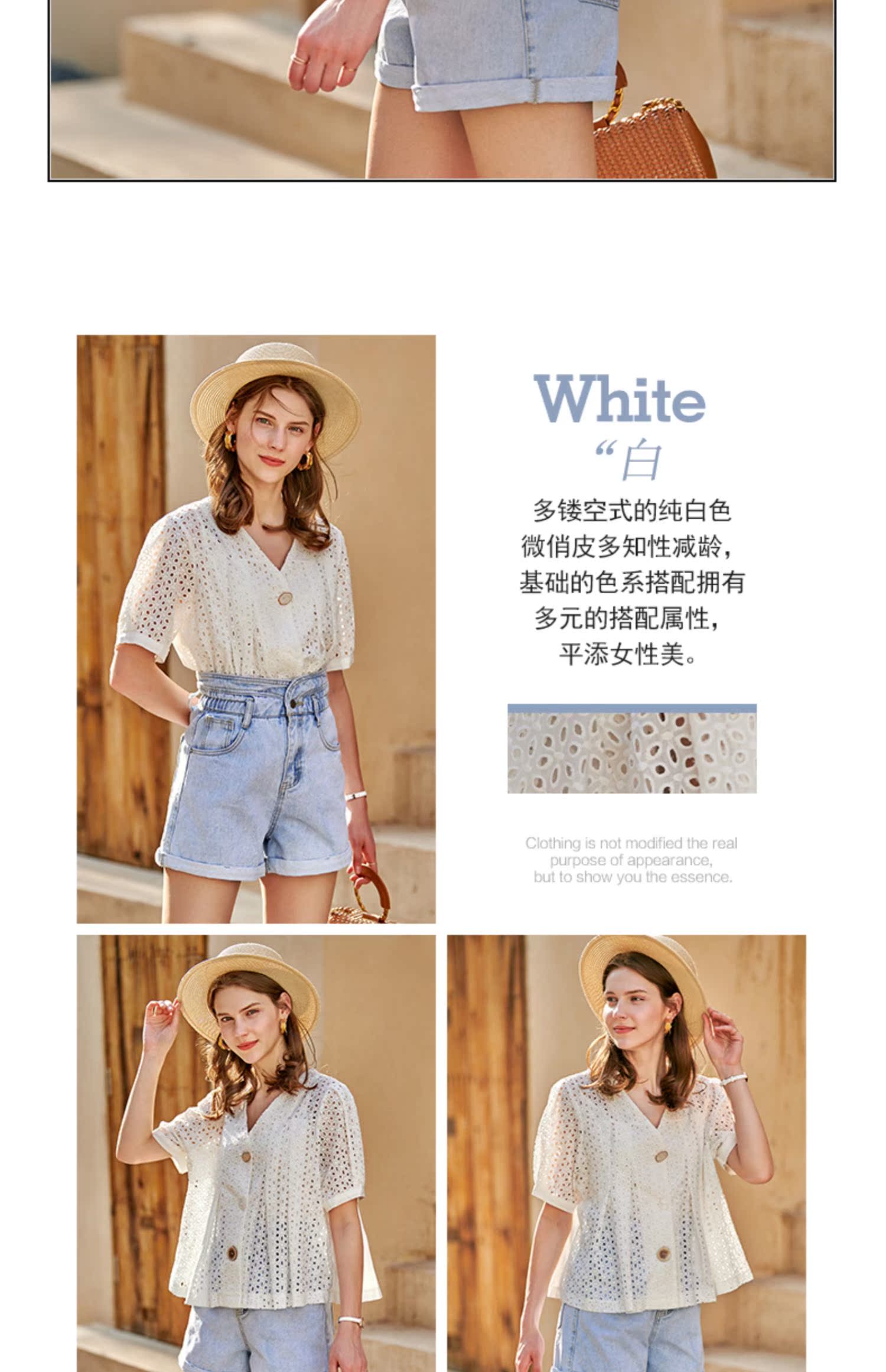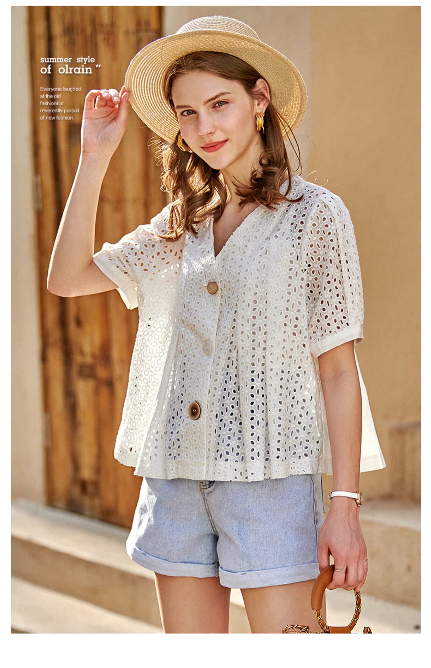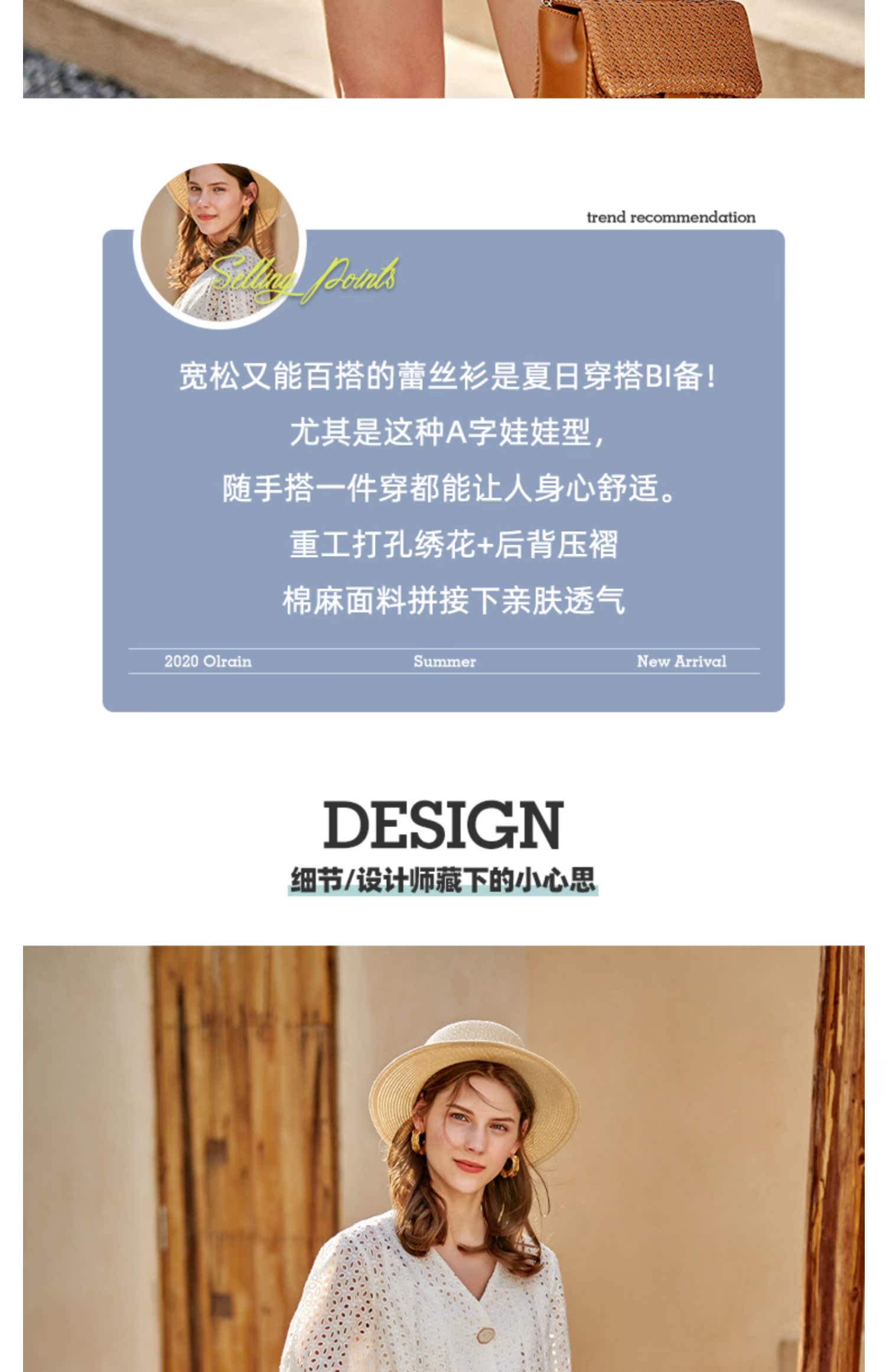 欧芮儿蕾丝衫女短袖2020夏季新款镂空洋气宽松V领气质时尚半袖