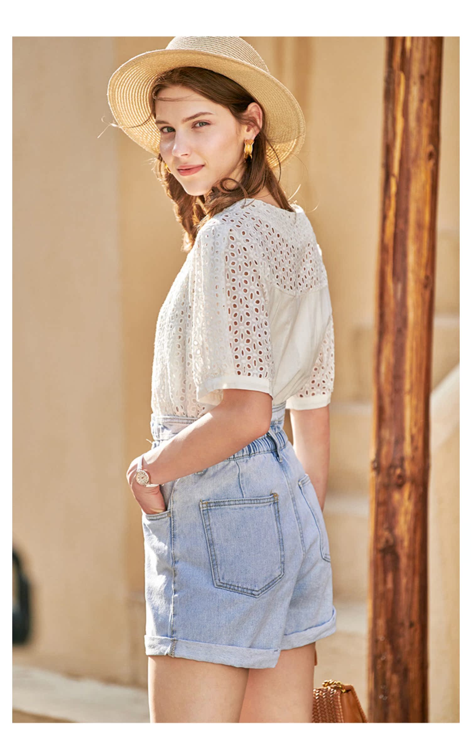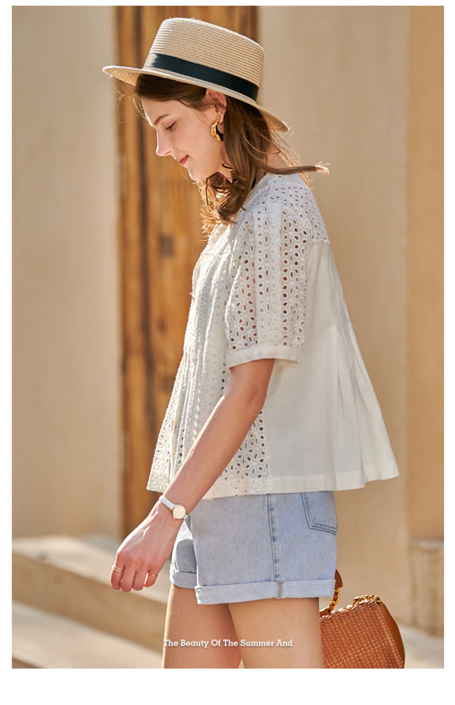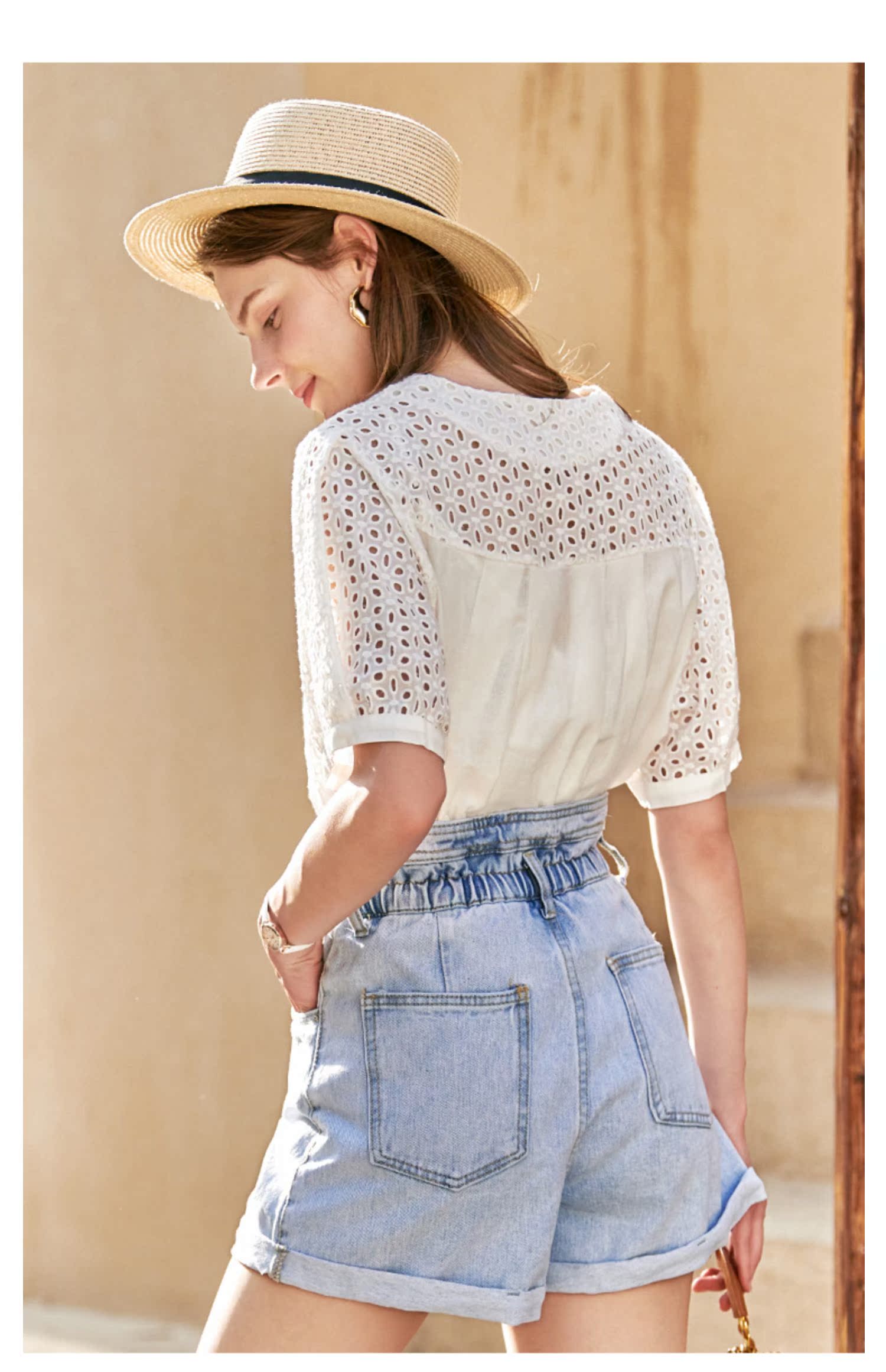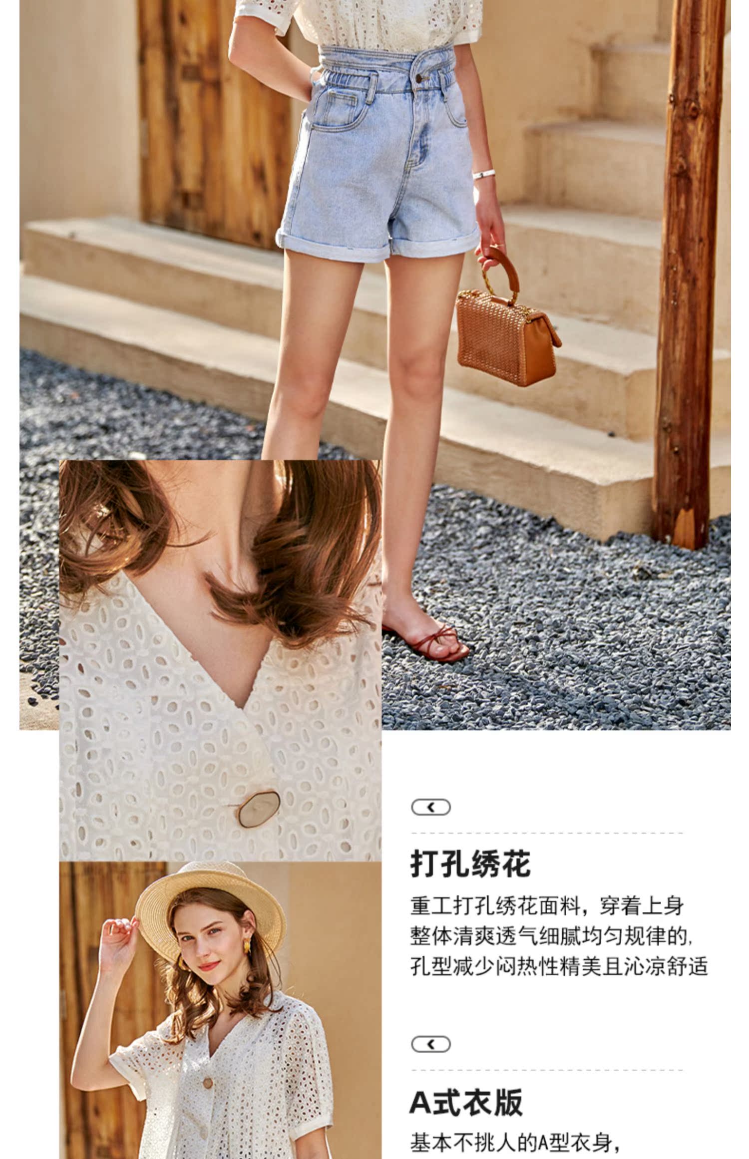 欧芮儿蕾丝衫女短袖2020夏季新款镂空洋气宽松V领气质时尚半袖