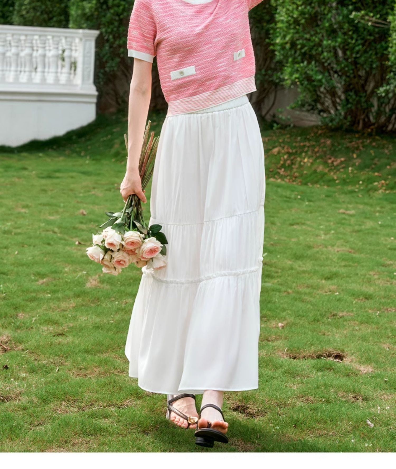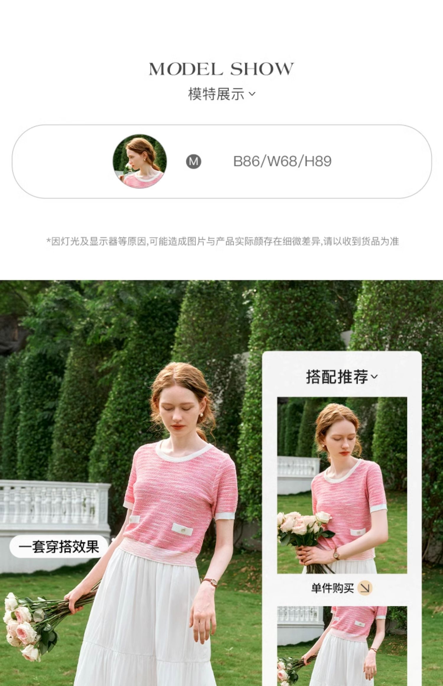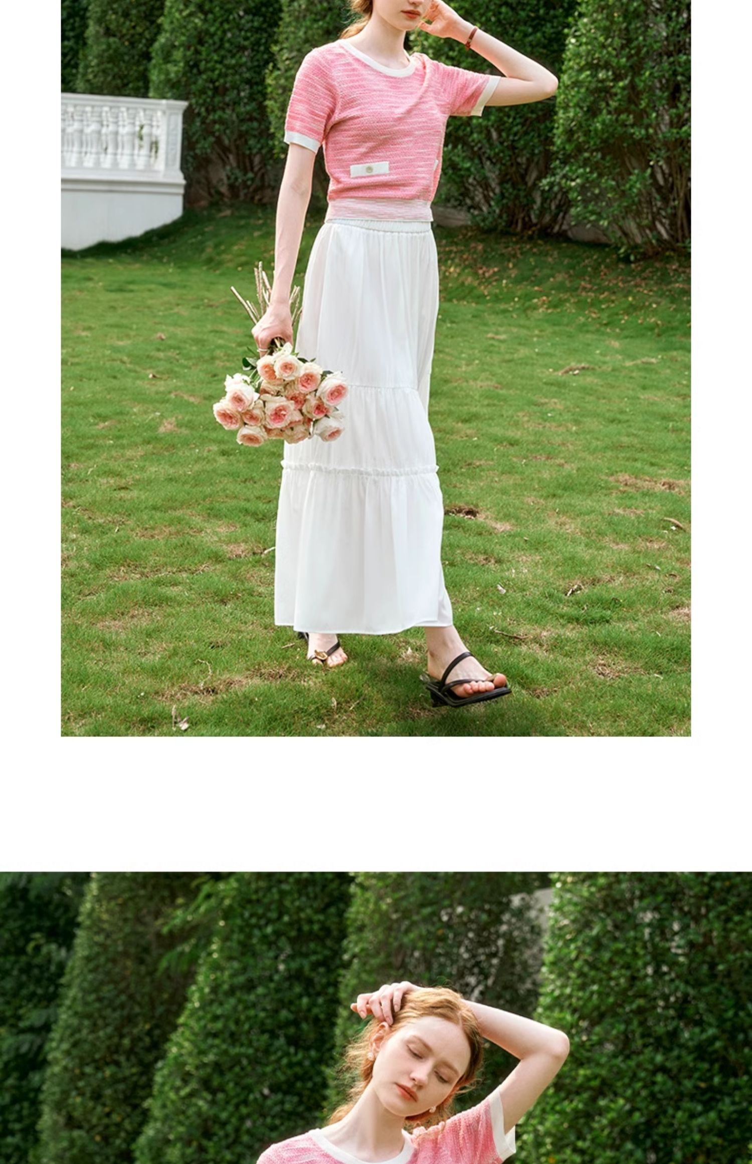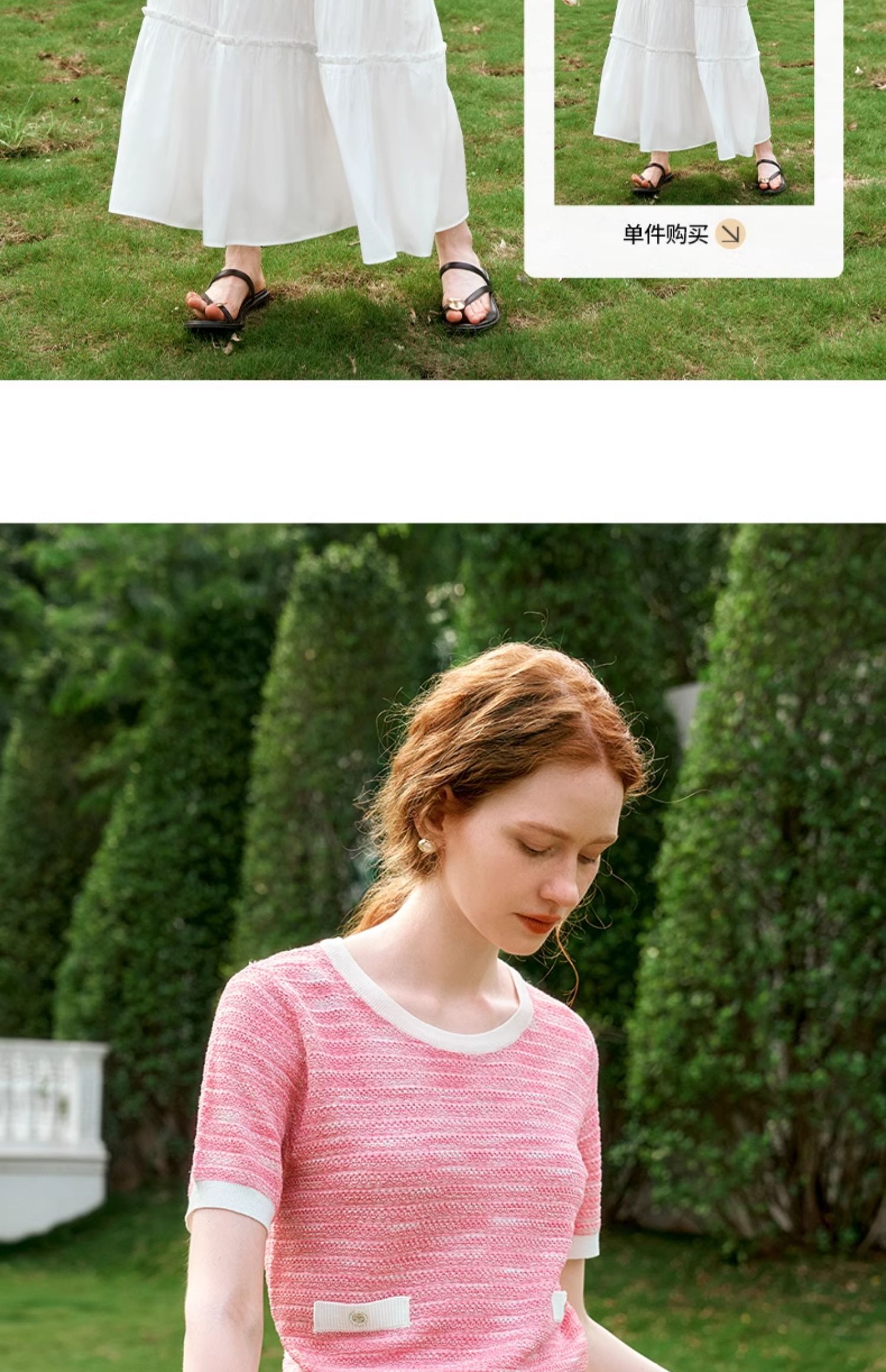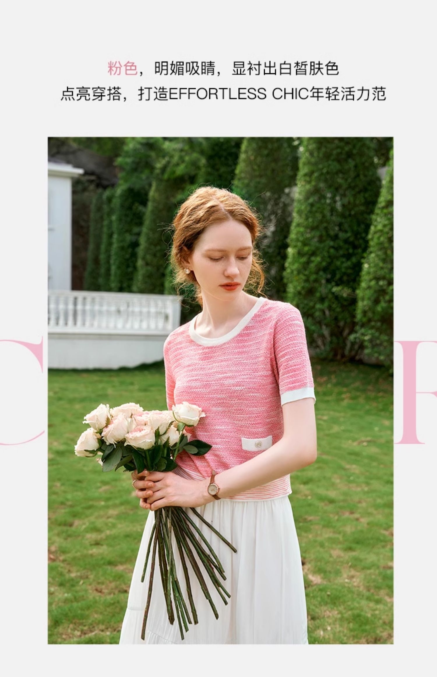 OLrain欧芮儿粉色圆领针织衫女夏季2024年新款小香风宽松套头短袖