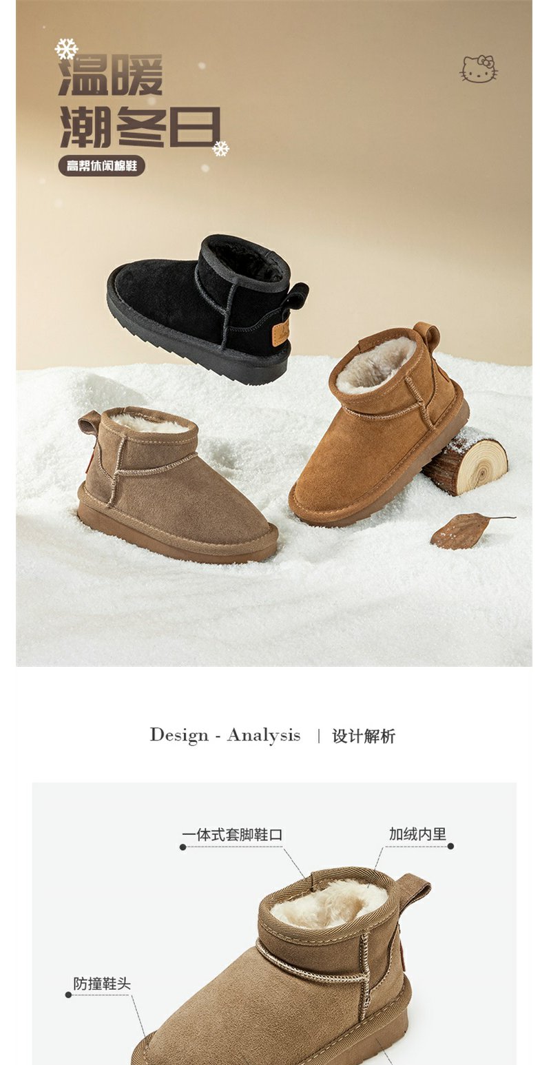 HelloKitty童鞋儿童棉鞋冬季新款中大童女孩加绒加厚棉靴保暖靴子