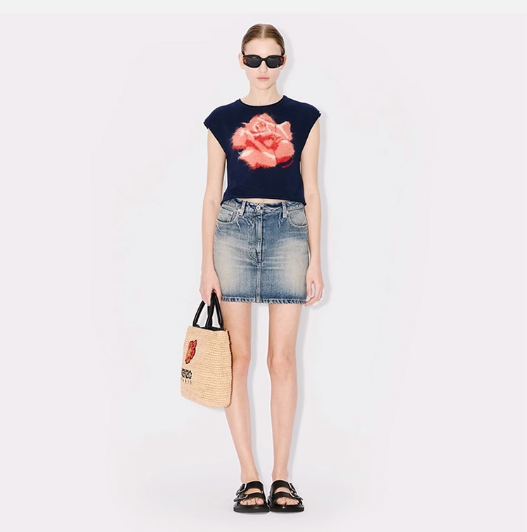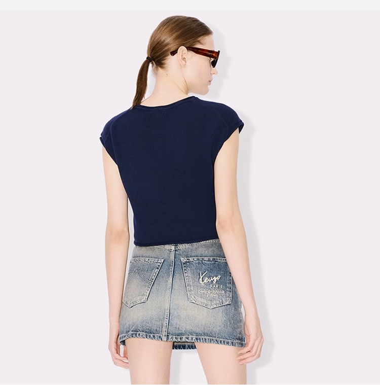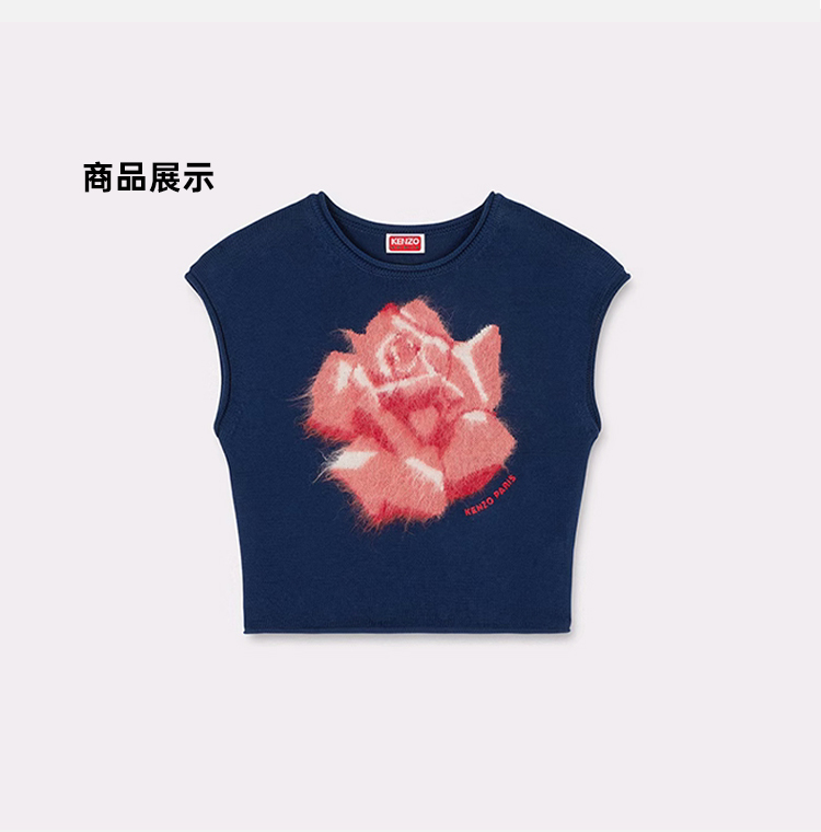 KENZO 高田贤三 女士玫瑰花徽标提花混纺羊毛针织背心 蓝色 FE52 PU468 3BM 77