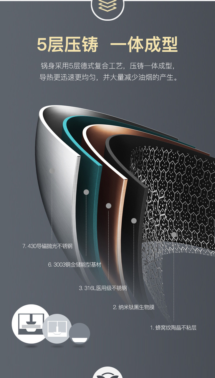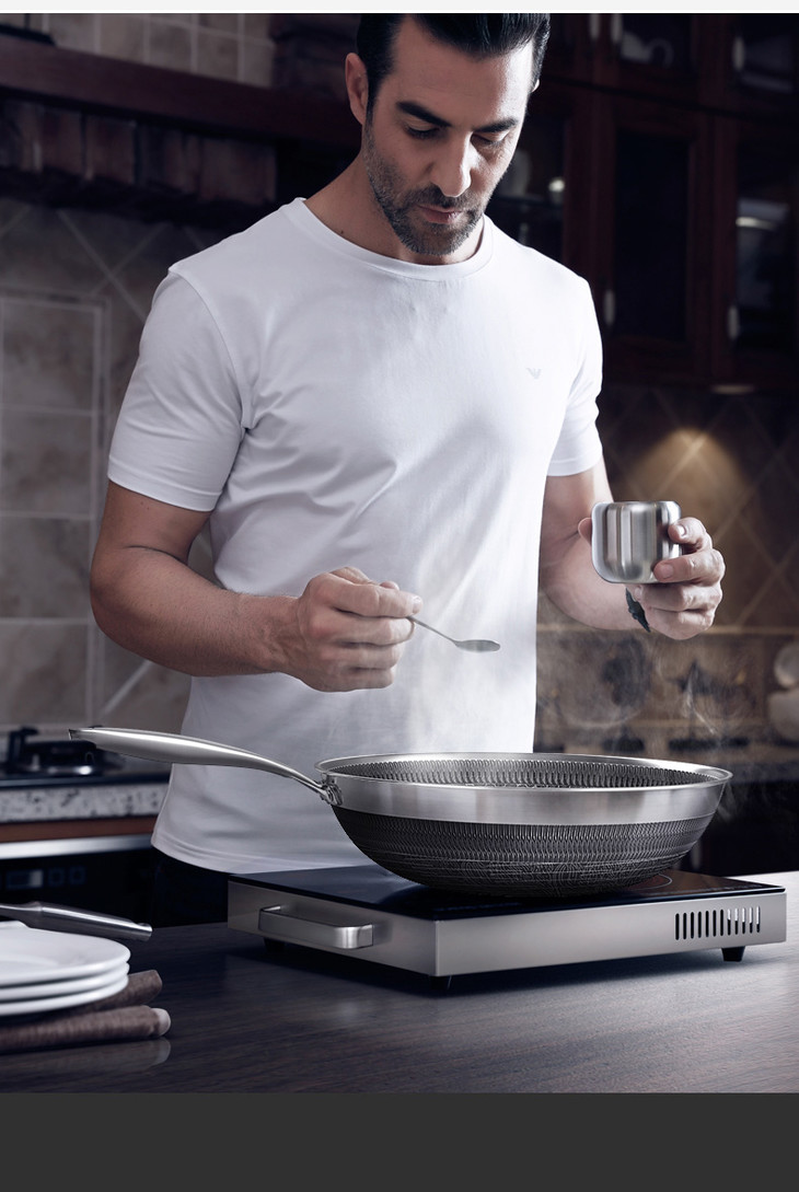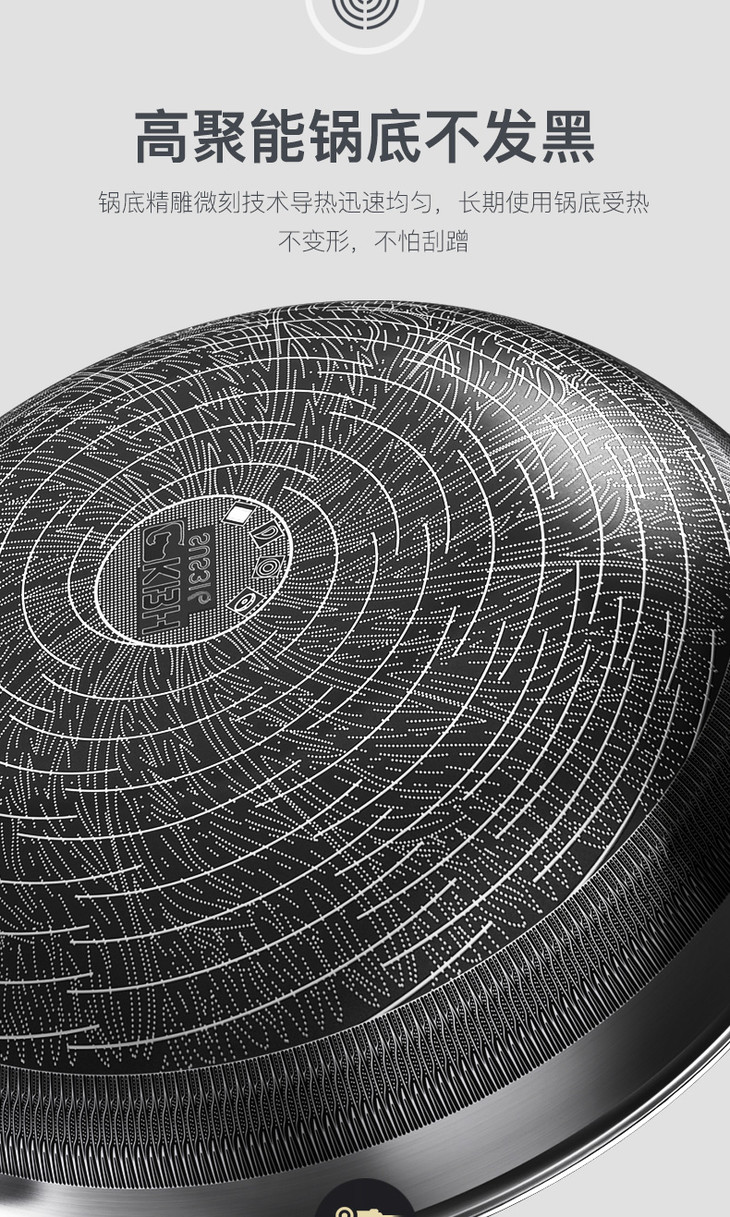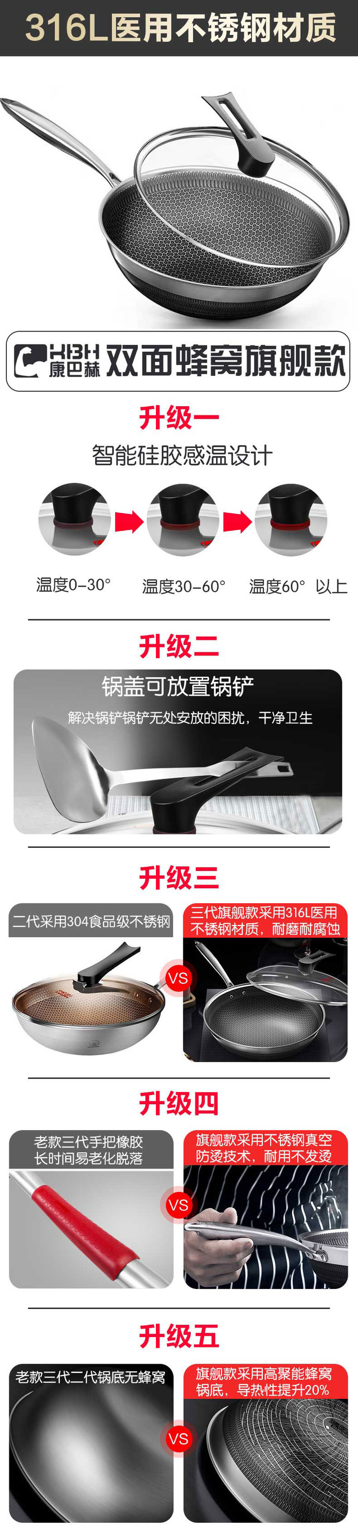 德国康巴赫旗舰款316L医用级不锈钢双面屏炒菜锅不粘锅炒锅32cm 电磁炉明火通用