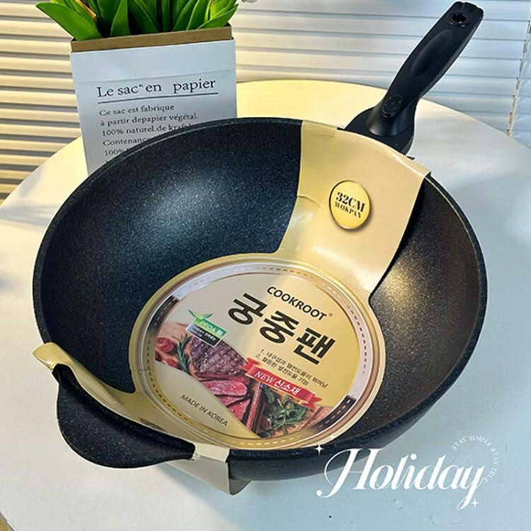 韩国原装进口库克麦饭石炒锅32CM(双炒)