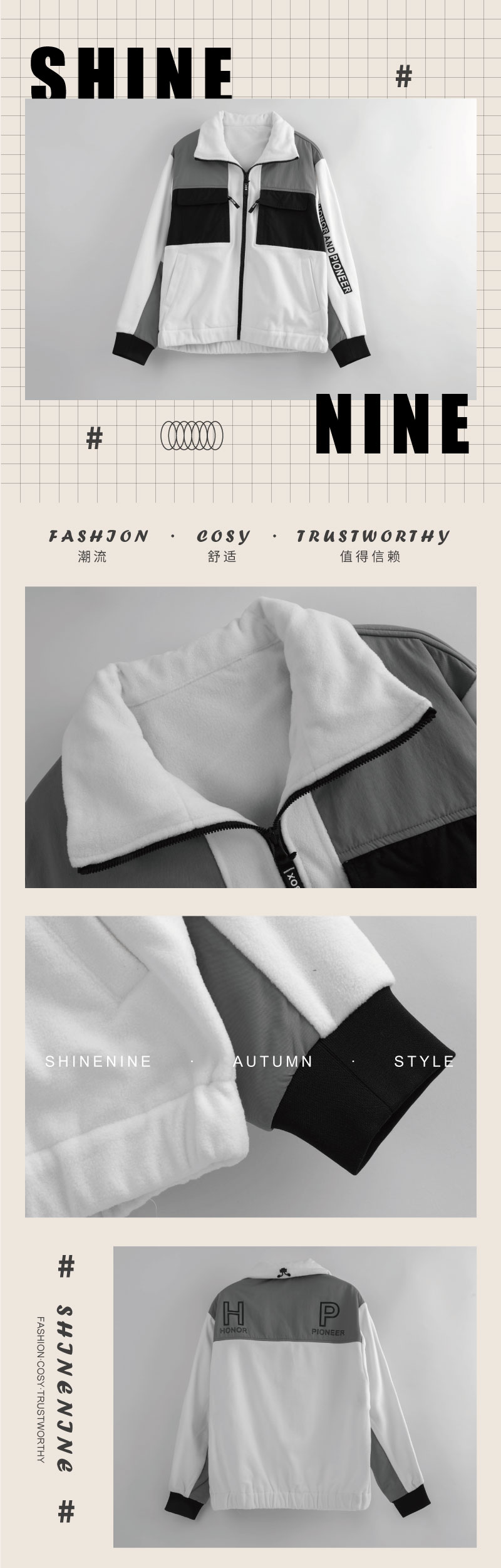 933272236拼色加绒短款夹克