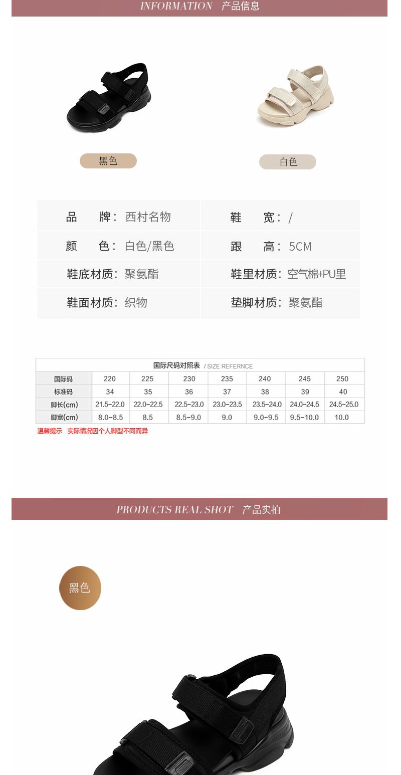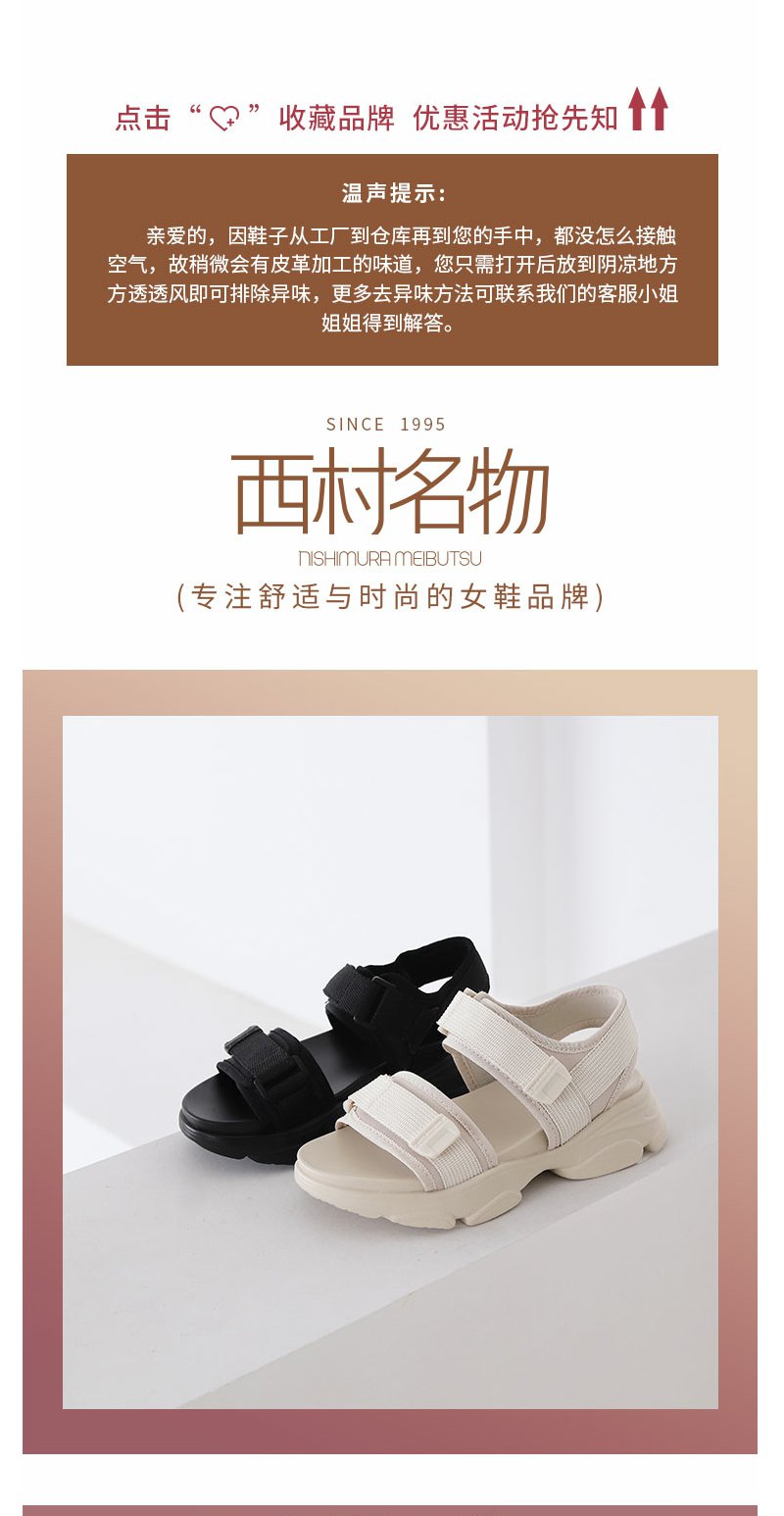 西村名物2022年夏新款休闲魔术贴厚底增高凉鞋女24061